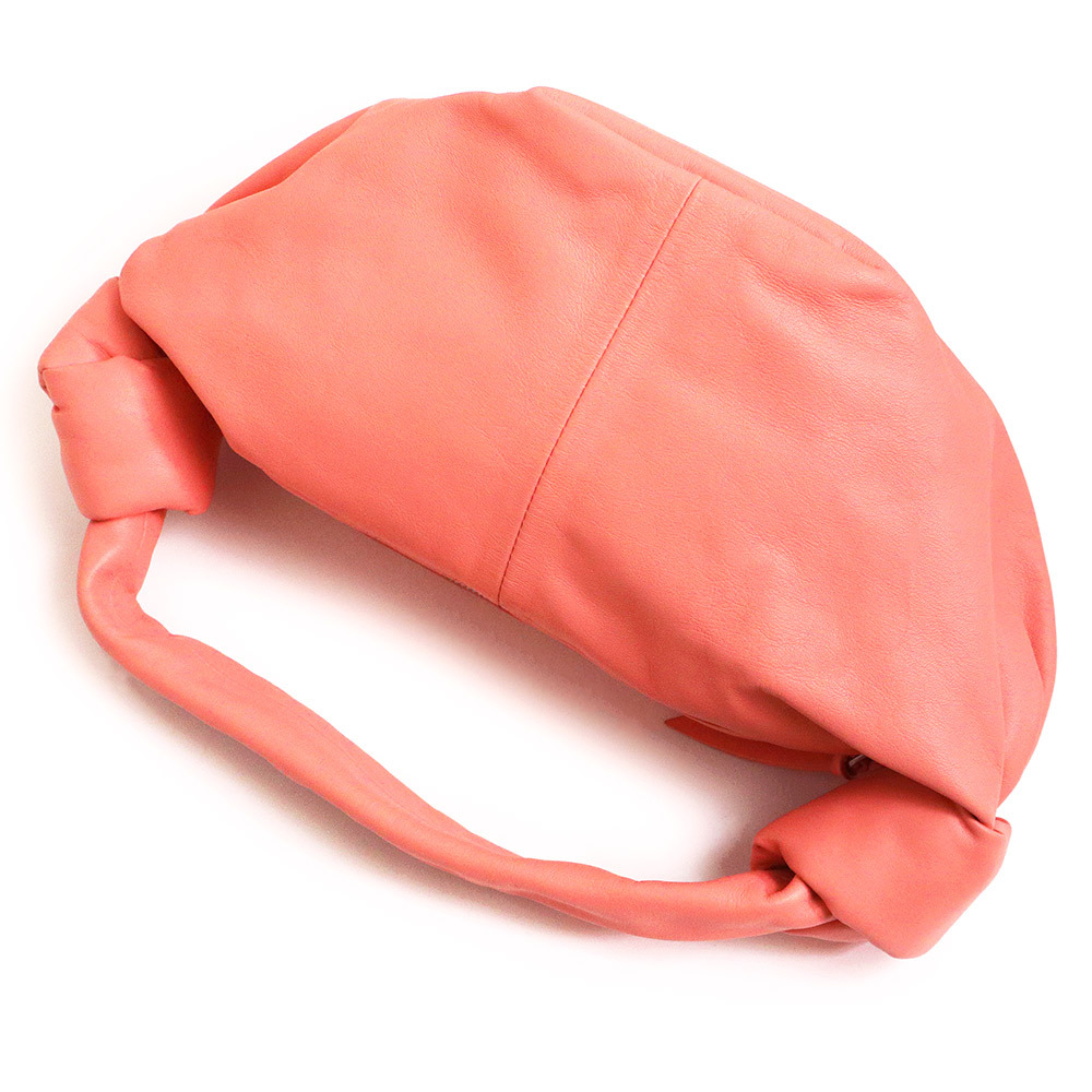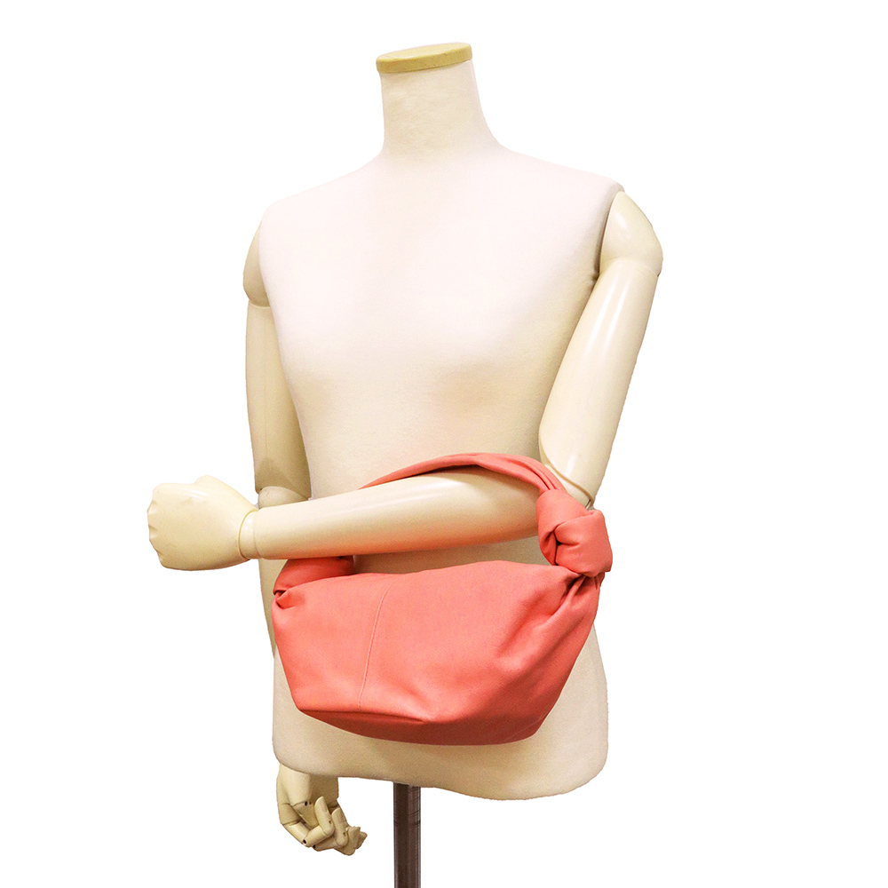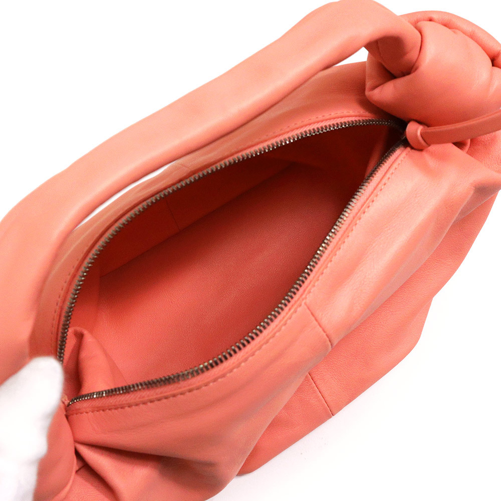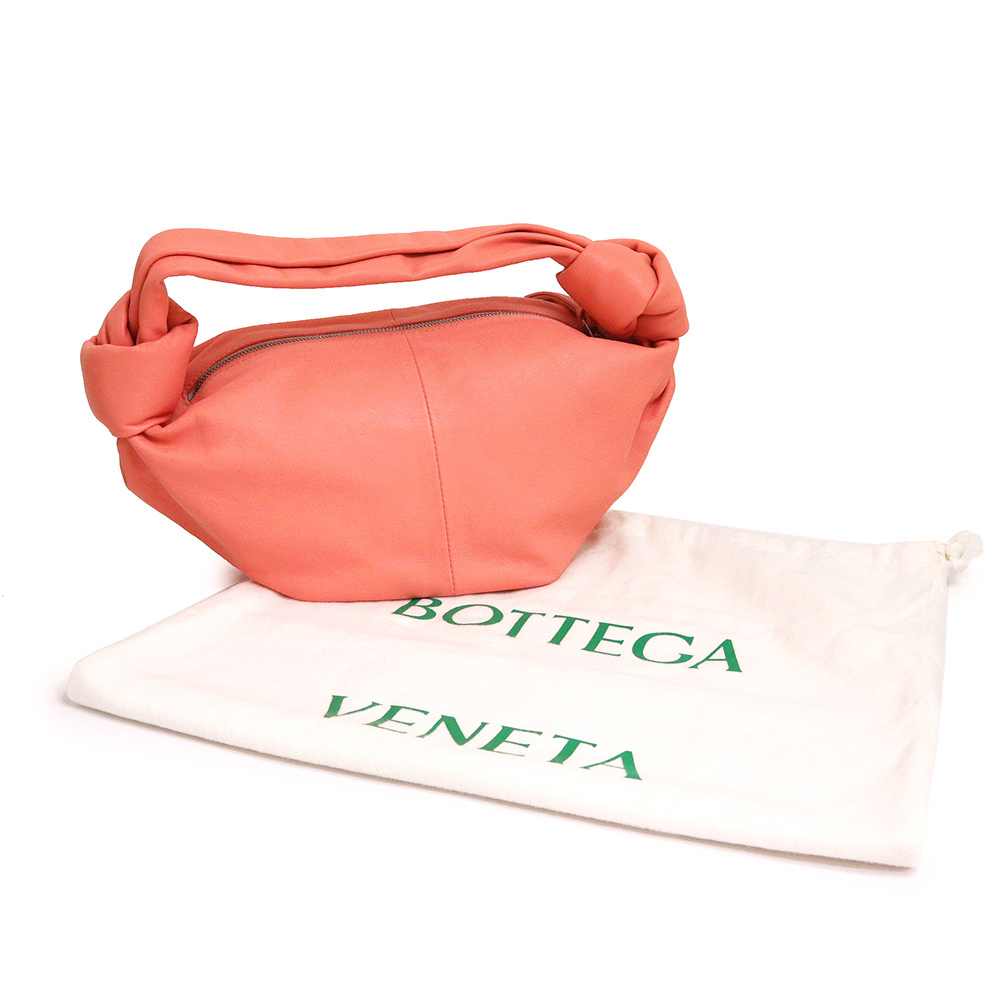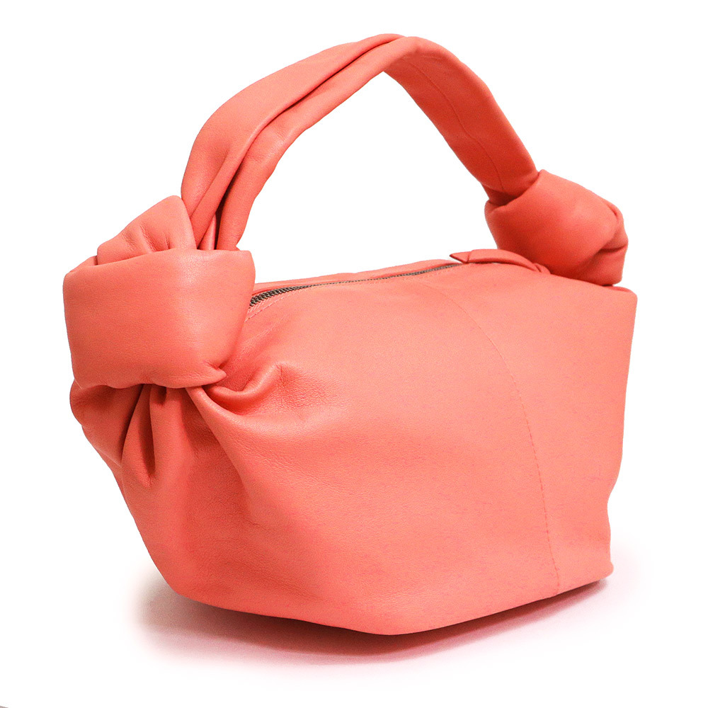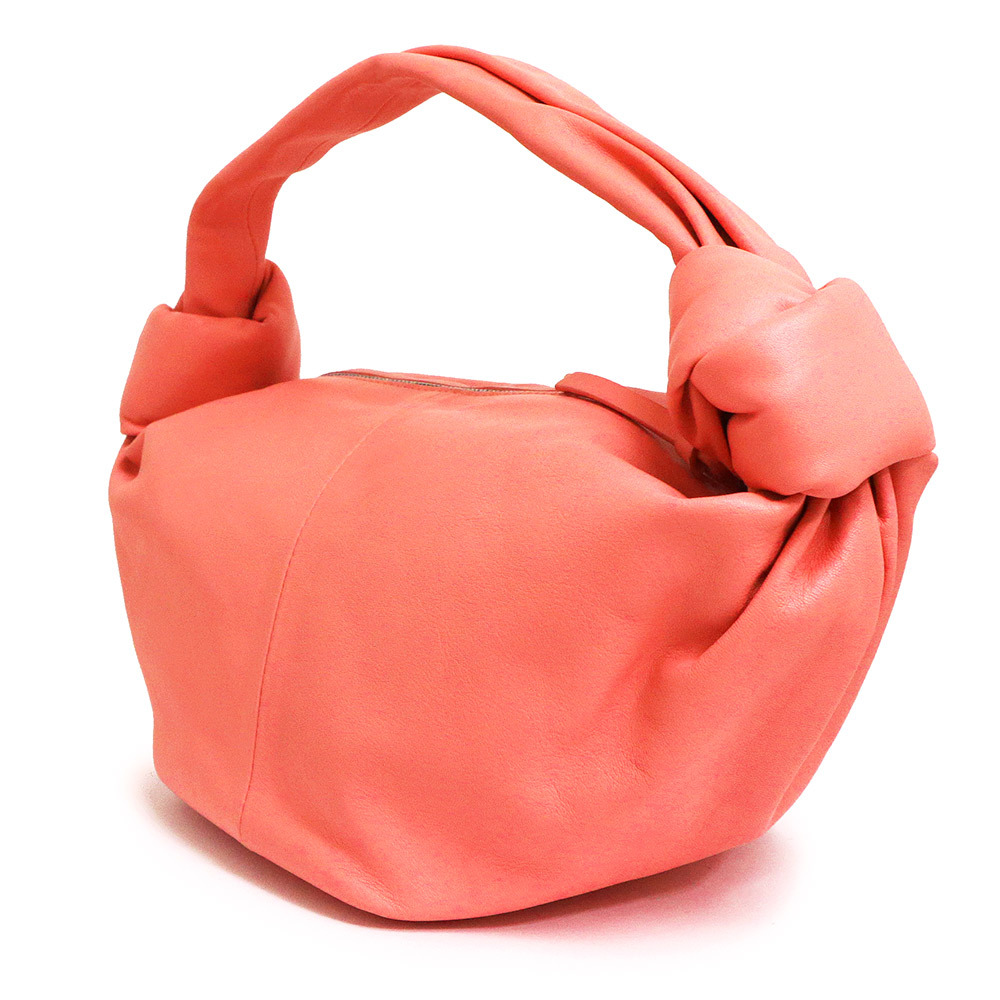 (新品・未使用品)ボッテガヴェネタ BOTTEGA VENETA ダブルノット ミニ ハンドバッグ カーフレザー ピーチ ピンク シルバー金具 629635