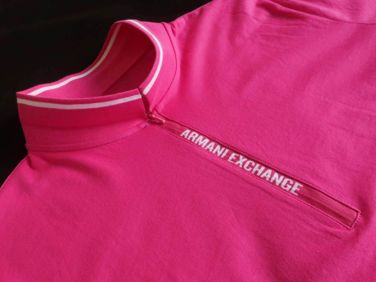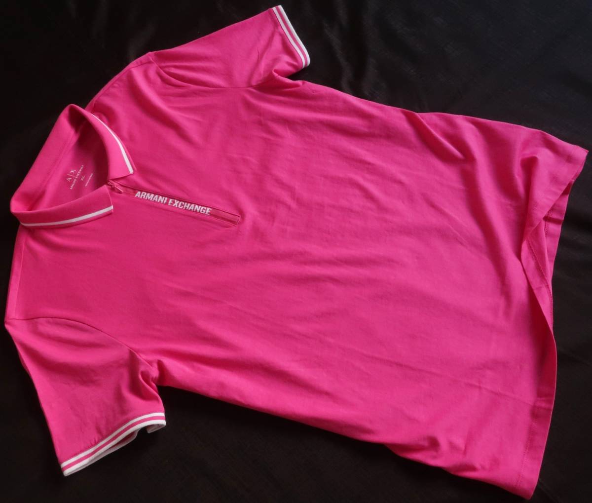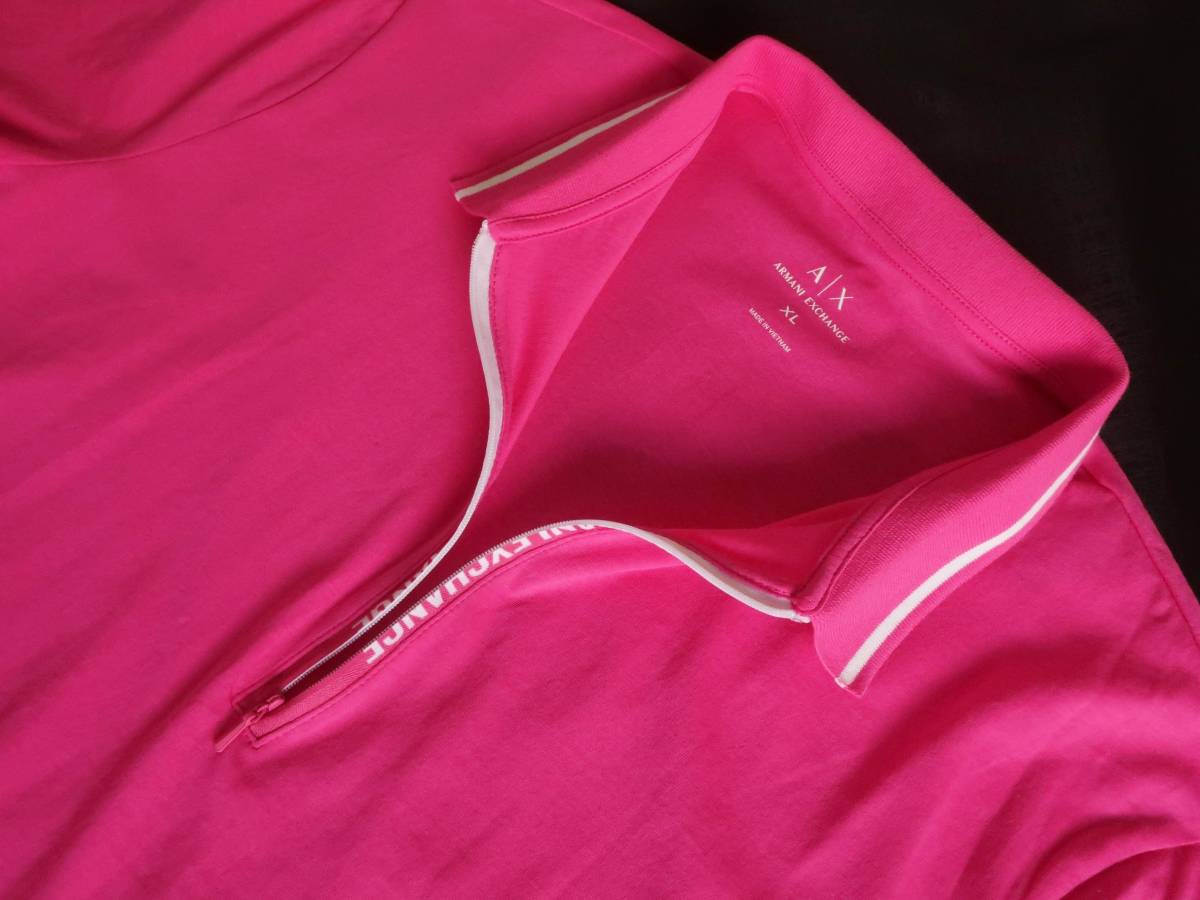 新品★アルマーニ★ホットな ショッキングピンク ポロシャツ★ホワイト ロゴジッパー★半袖 ニットシャツ L★AX ARMANI★12