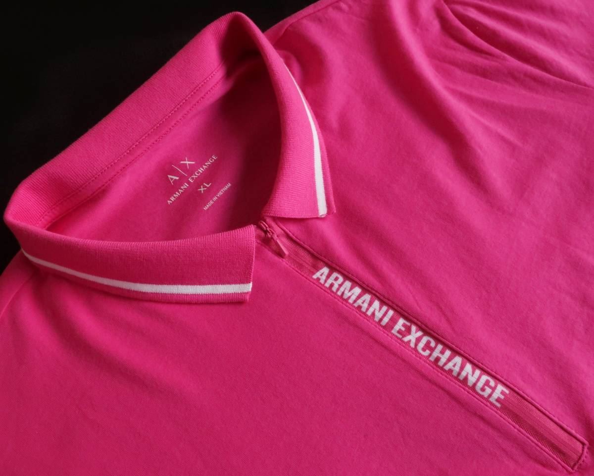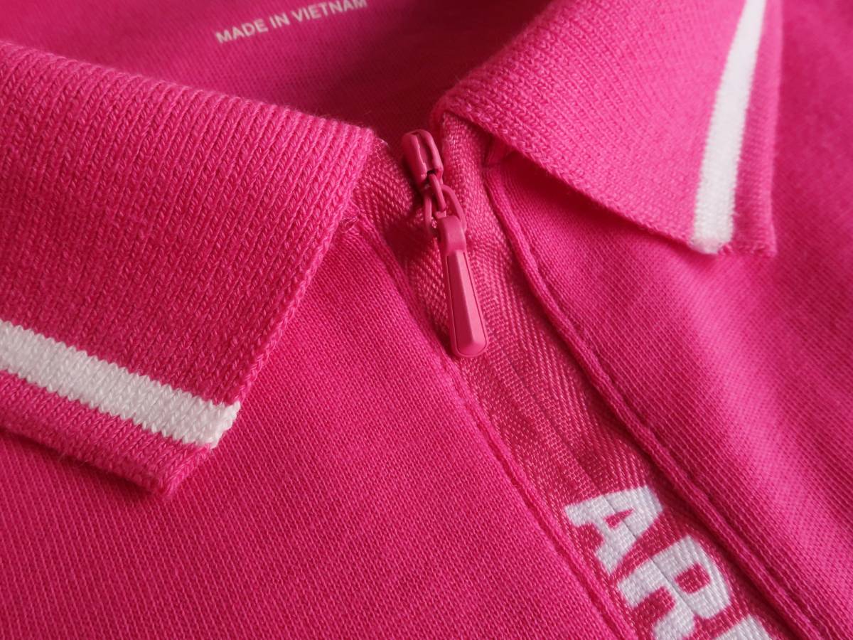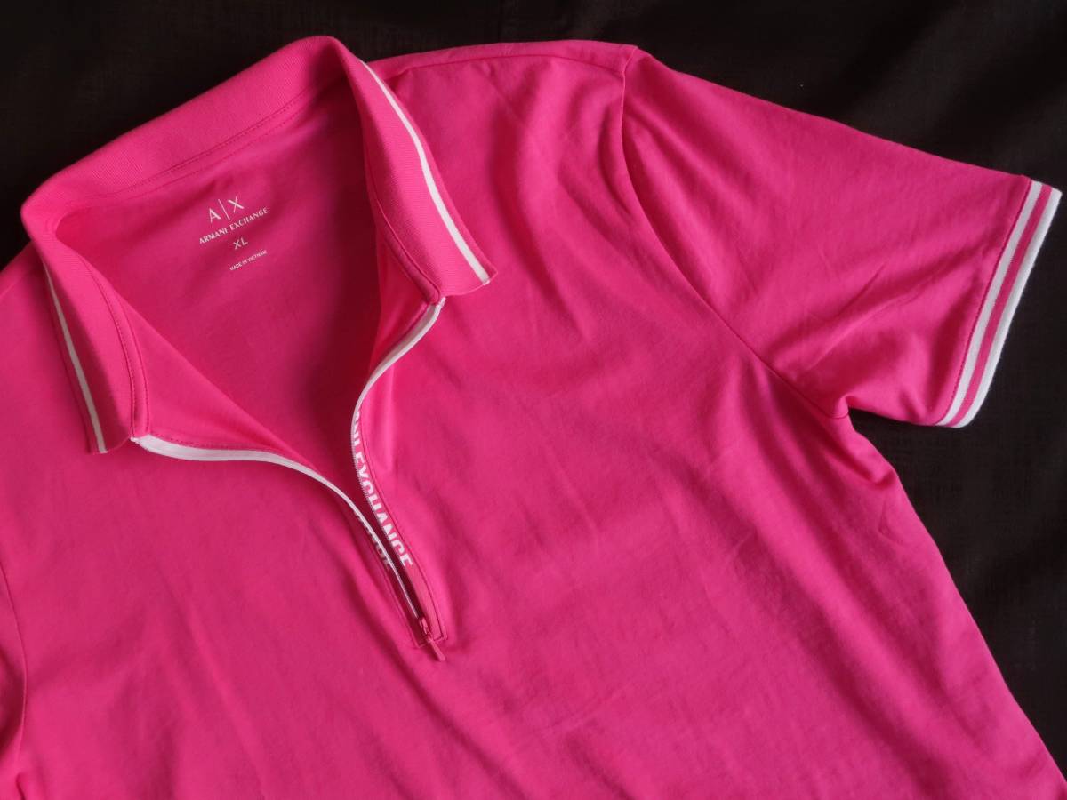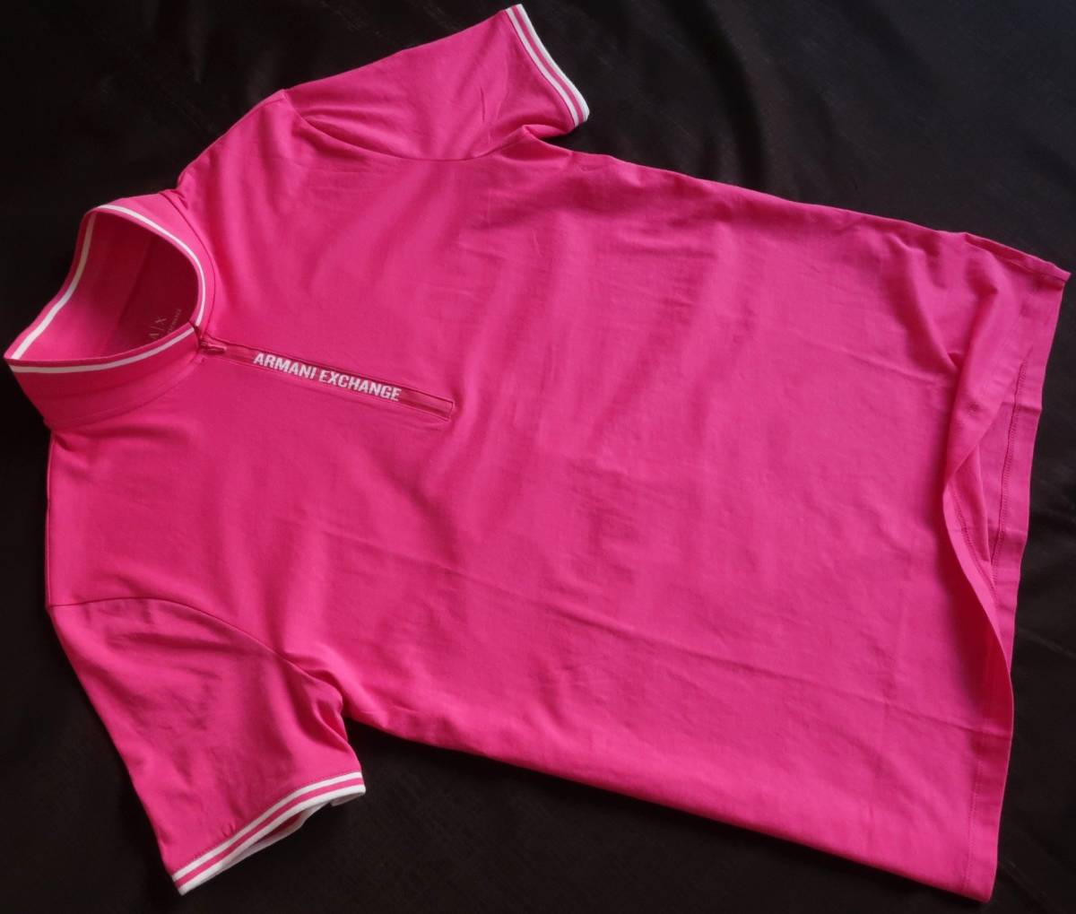 新品★アルマーニ★ホットな ショッキングピンク ポロシャツ★ホワイト ロゴジッパー★半袖 ニットシャツ L★AX ARMANI★12