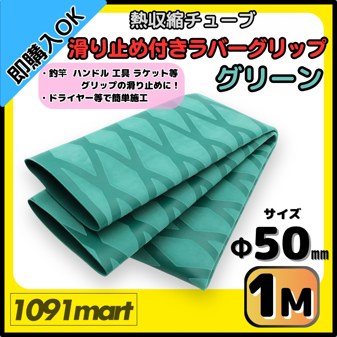 【送料無料】熱収縮チューブ ラバーグリップ Φ50㎜ 100㎝ グリーン 滑り止め加工 グリップの補強に 釣竿 工具 ラケット