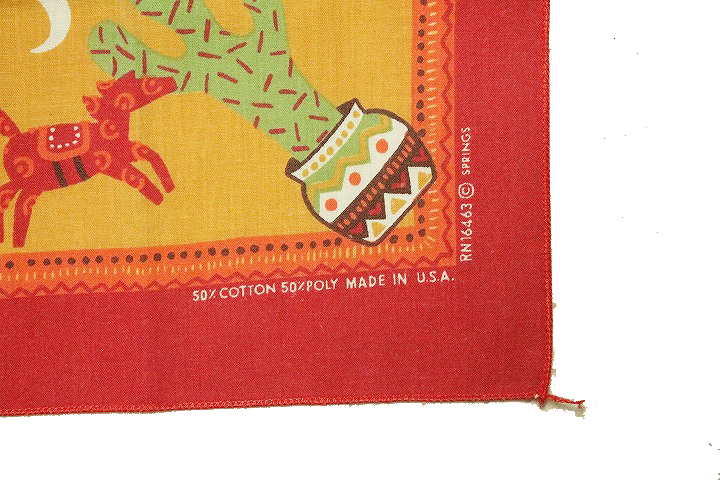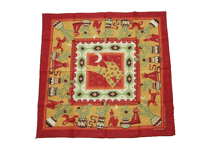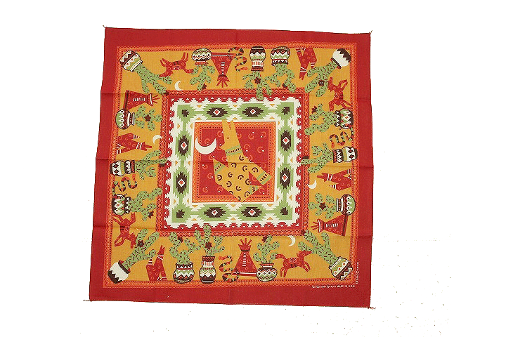80's~ SPRINGS バンダナ USA製 赤 柄 サボテン ネイティブ 50% COTTON 50% POLY MADE IN USA RN 16463 ビンテージ US 古着 オールド DC250