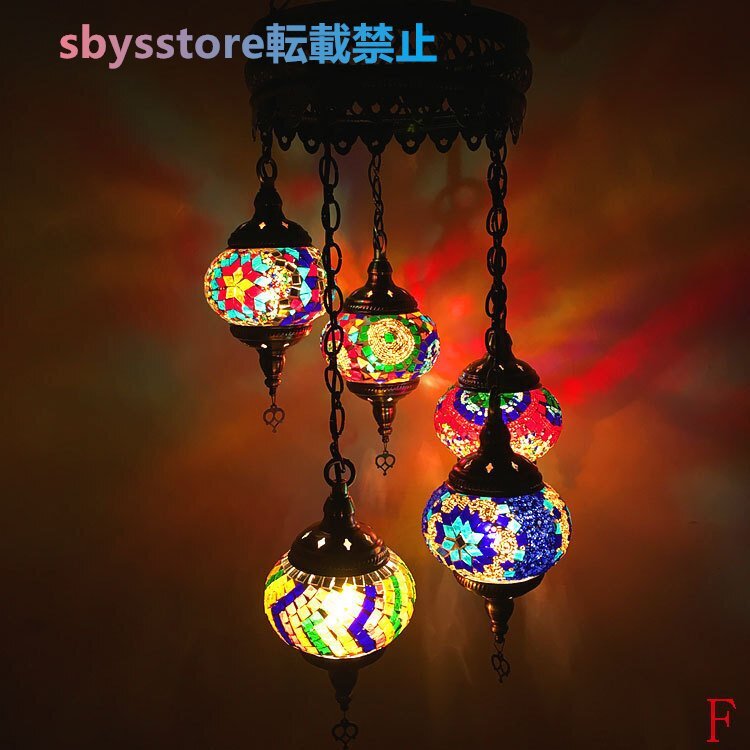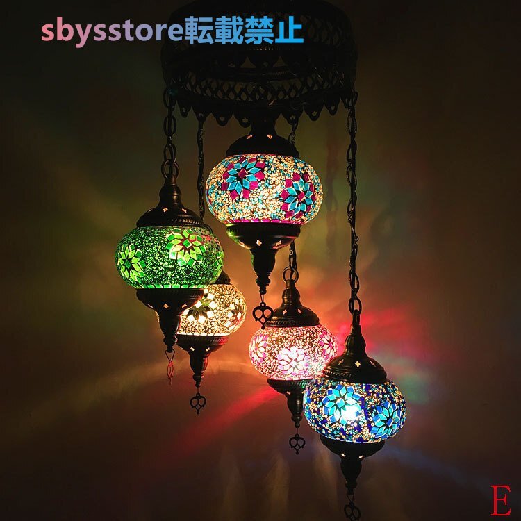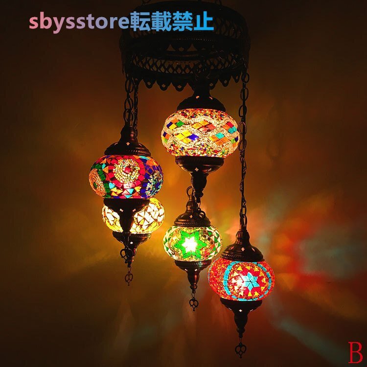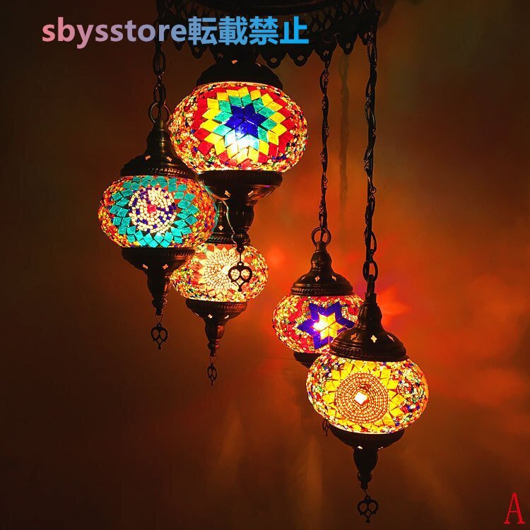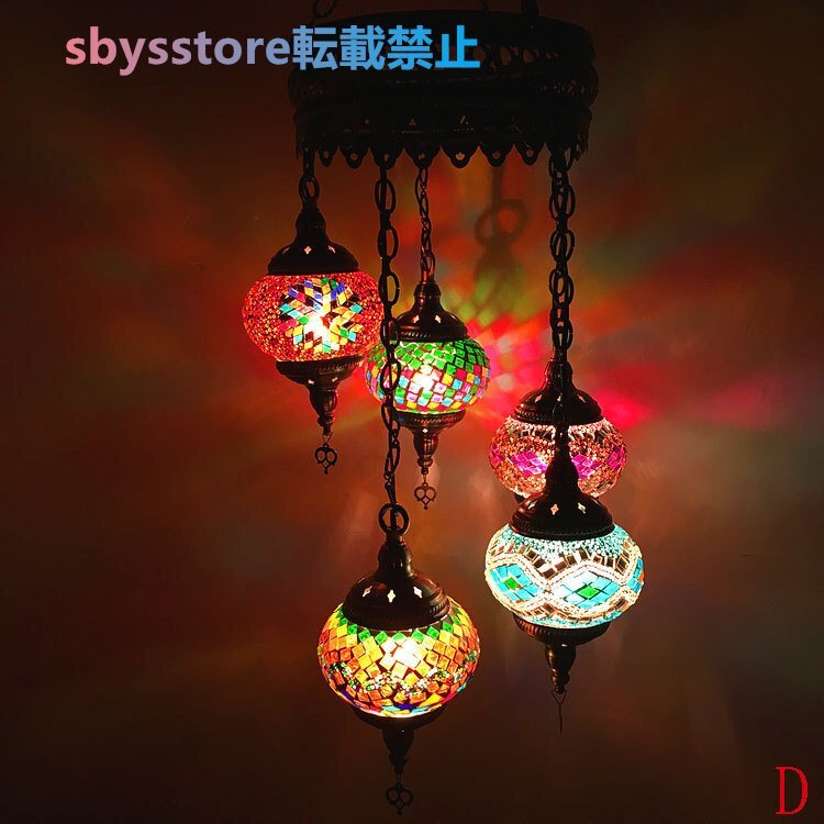 トルコランプ 職人手作り カラーガラス 吊り下げ照明リビング、寝室、レストラン、カフェー、ホテル、民宿、バー 飾り 5灯式