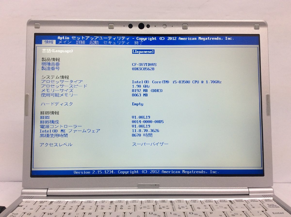 ジャンク/ Panasonic CF-SV7TDHVS Intel Core i5-8350U メモリ8.19GB ストレージ無し 【K18777】