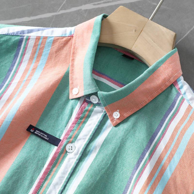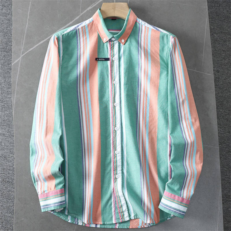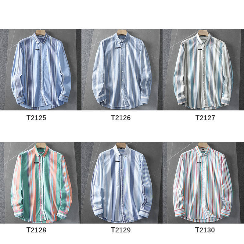 T2128-4XL 新品DCKMANY コットン100% オックスフォード 長袖シャツ 形態安定 快適 通勤 春夏秋 メンズ ストライプ ボタンダウン シャツ