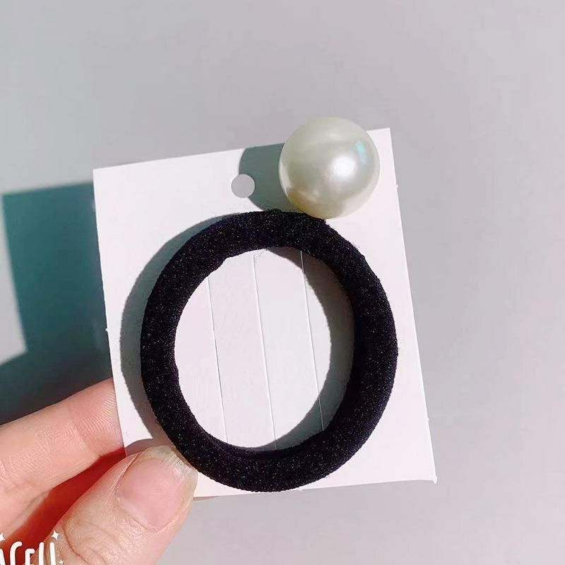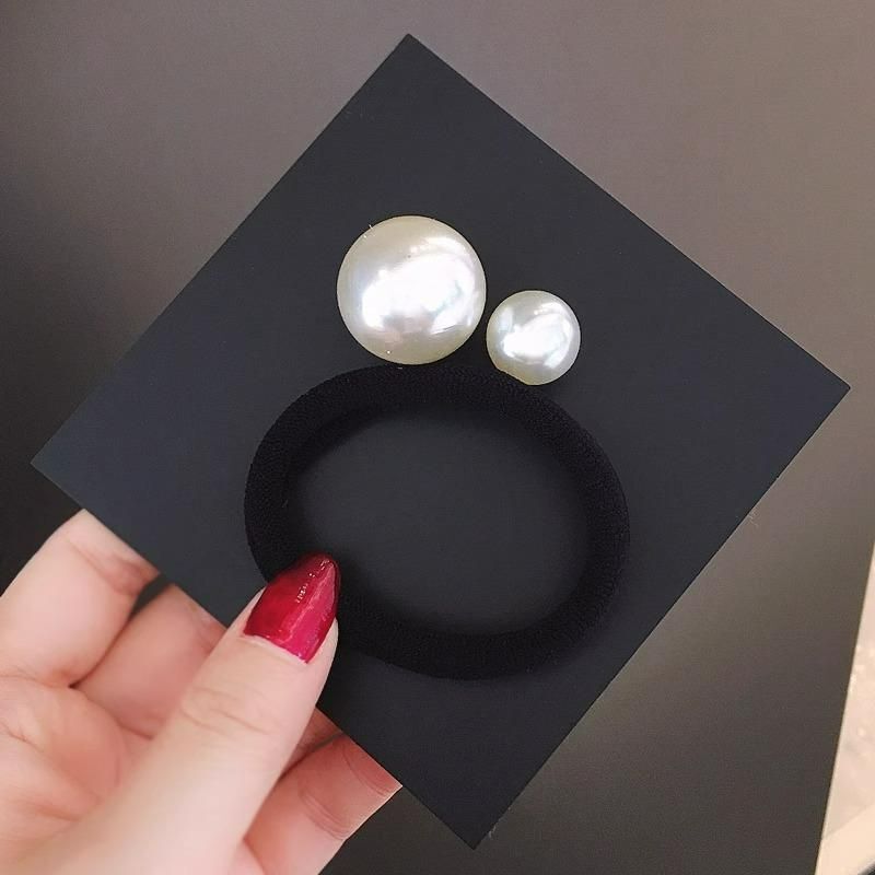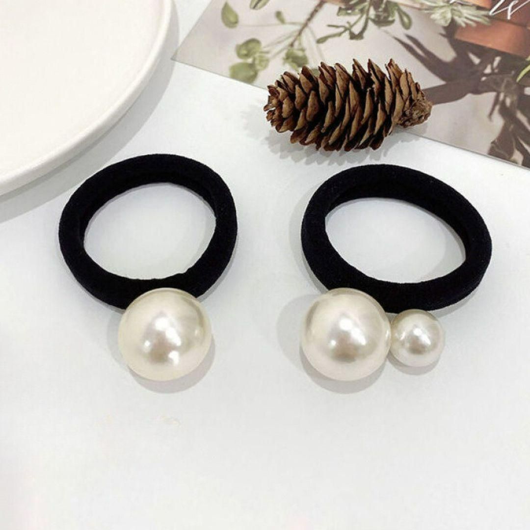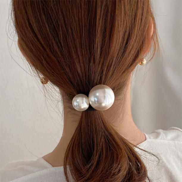 存在感のある大きめフェイクパールが印象的な、大人可愛いヘアゴムセットです。