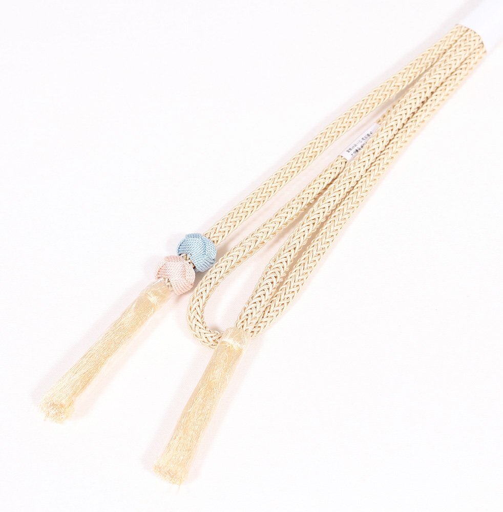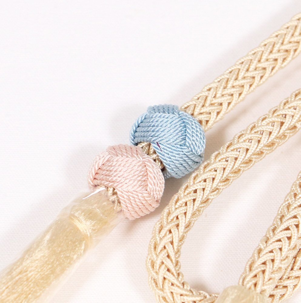 | 帯締め | 夏用 手組紐 帯締め 新品 羅 ベージュ トンボ玉 薄ピンク・青 |