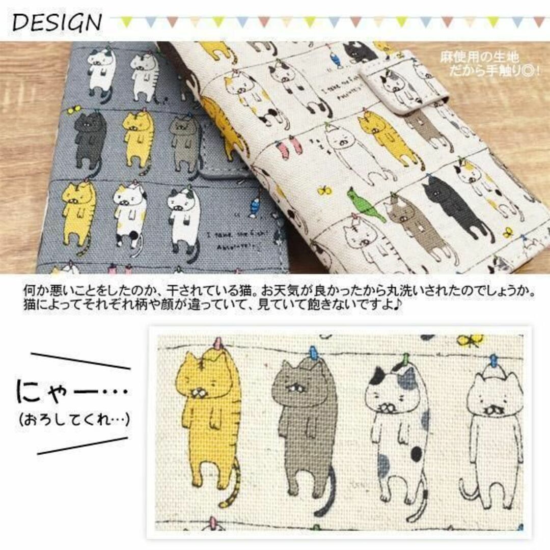 干されている柄の手帳型ケースです。