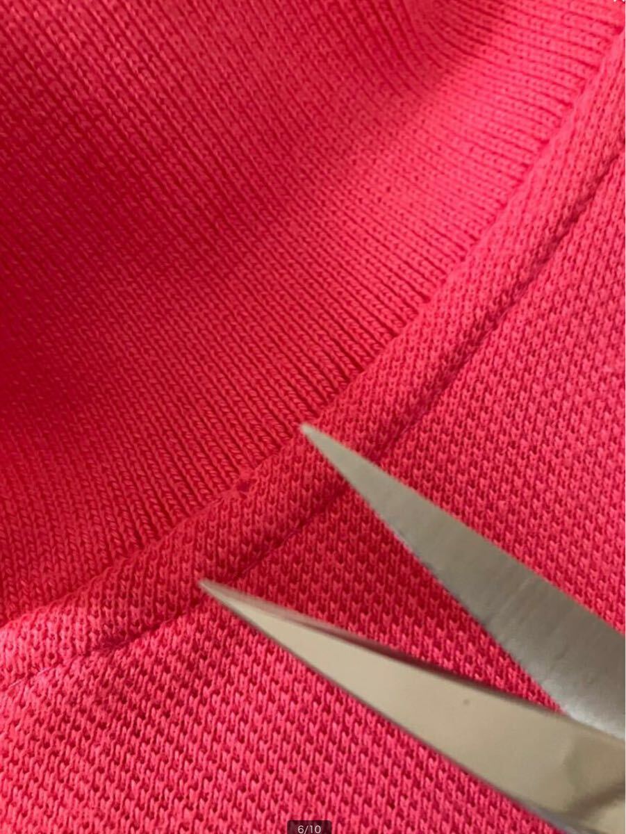 ★色柄/ピンク×(襟、袖ライン入り)ネイビー/左胸(ワンポイント刺繍)ネイビー
