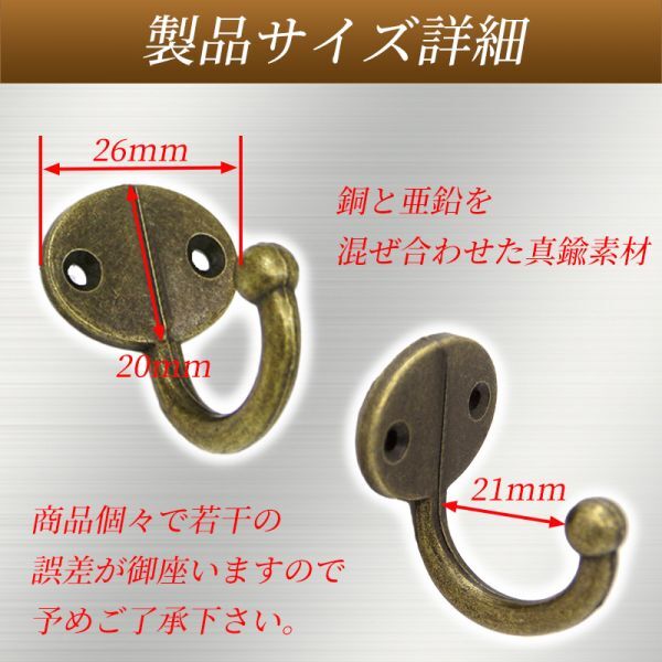 アンティーク調 壁掛け フック 5個セット 金具 レトロ キーフック おしゃれ 真鍮 ブロンズ ネジ付 雑貨 DIY |