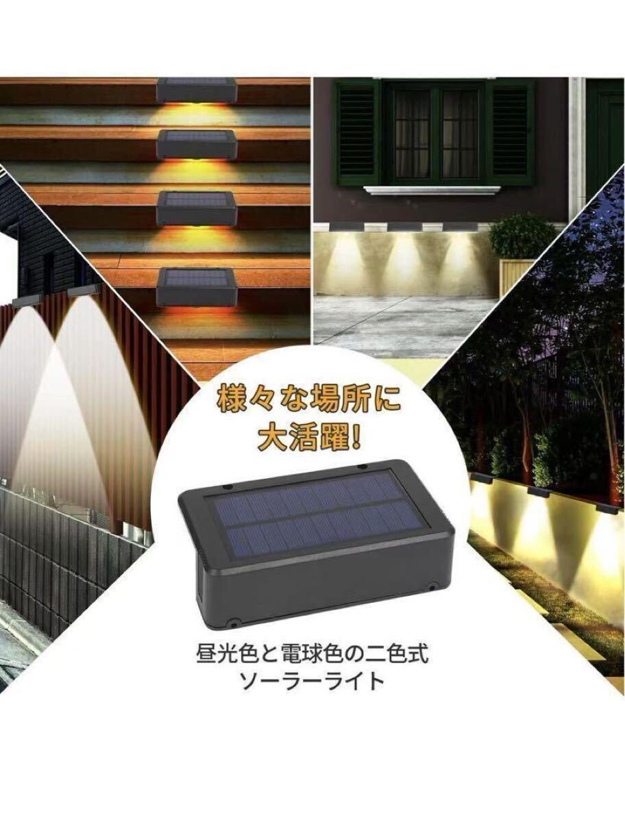 ソーラーライト 屋外 大容量バッテリー 階段ライト 二色式(昼光色と電球色) ガーデントーチ フェンス 屋外 ソーラー 表札灯 表示灯 玄関灯 門柱灯 LEDガーデン 屋外防水 取付簡単 庭 階段 通路 バックヤード 玄関等に適用 階段 4個入り