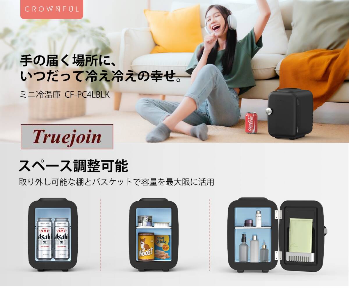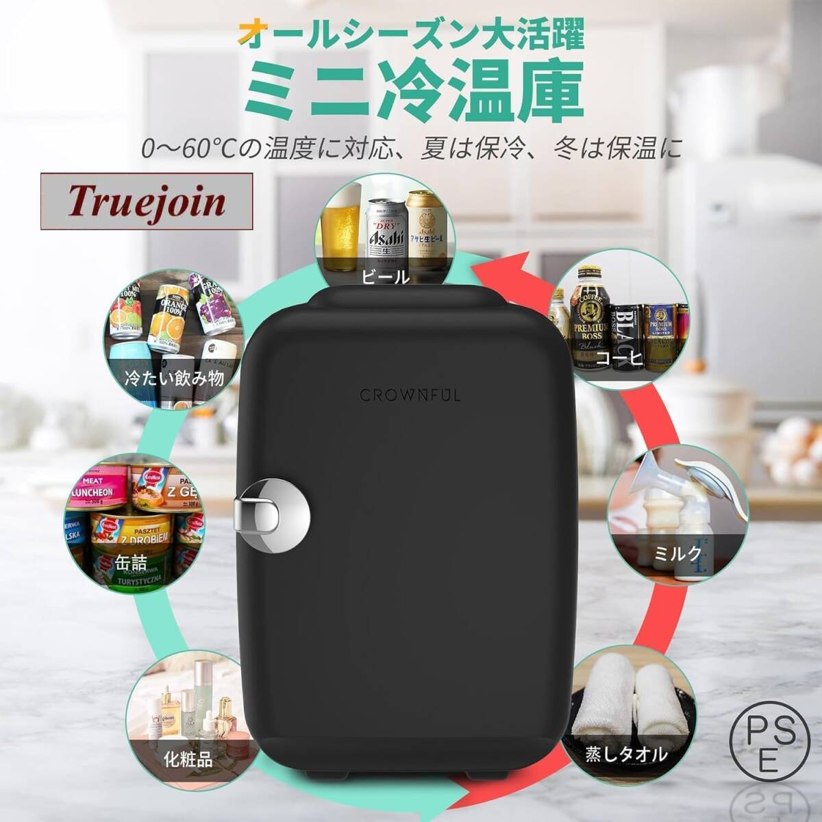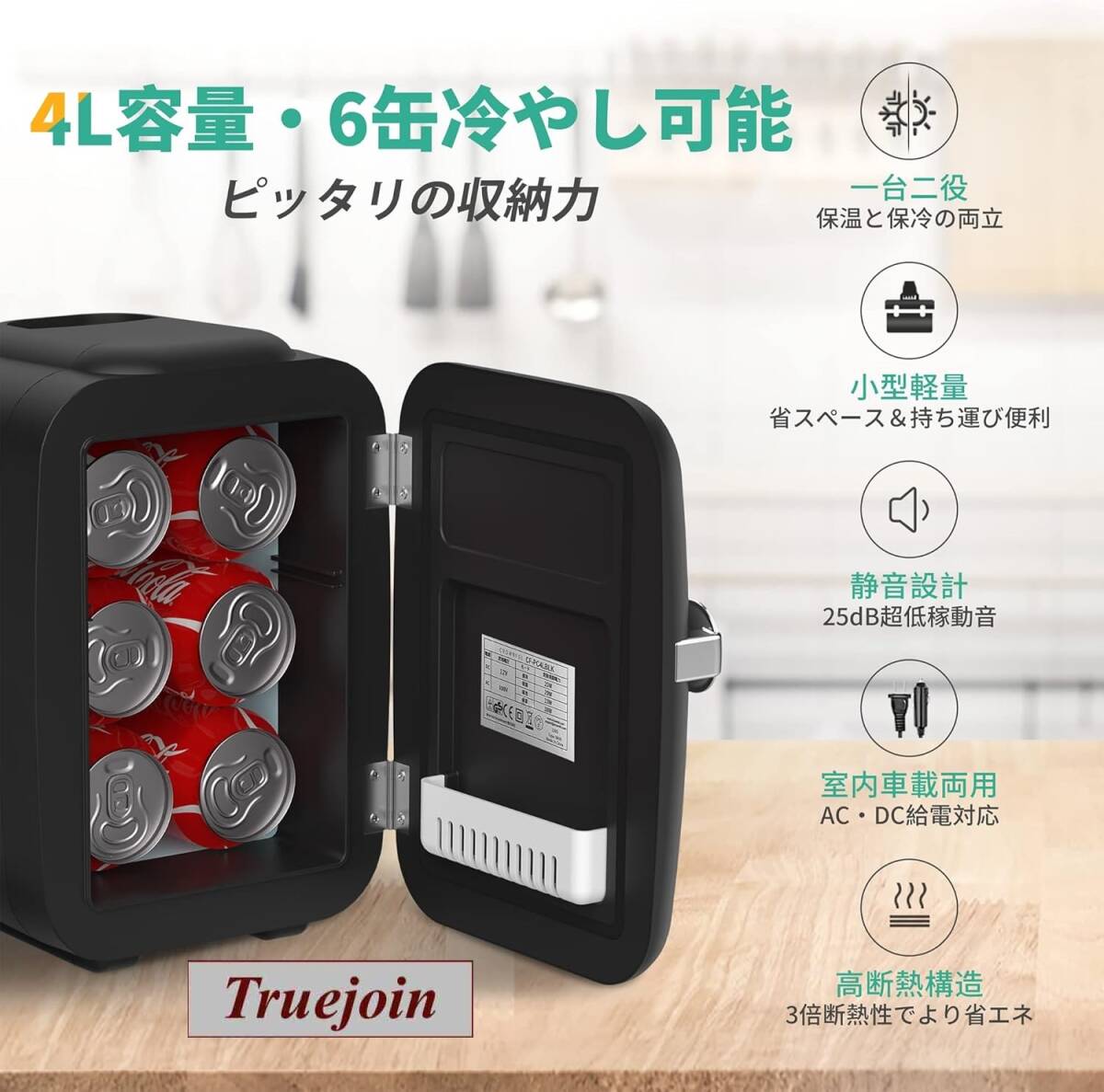 小型冷蔵庫 4L 冷温庫 ブラック 保冷 保温 ミニ冷蔵庫 ポータブル 超軽量 持ち運び便利 一人暮らし ペルチェ式 静音 省エネ