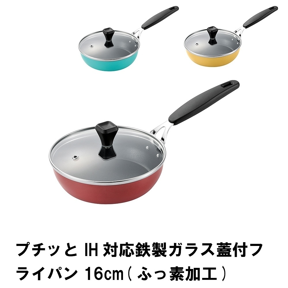 | 商品名 | プチッと IH対応鉄製ガラス蓋付フライパン16cm ふっ素加工 レッド M5-MGKPJ01548RD |