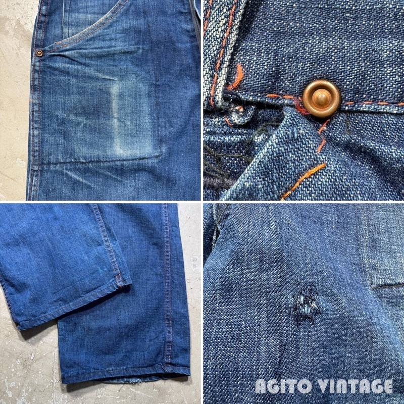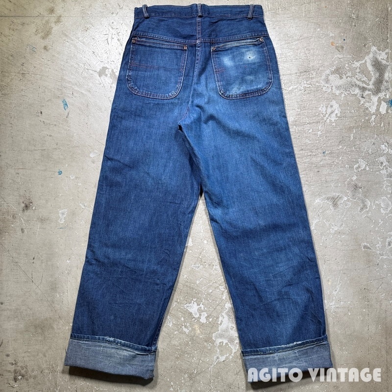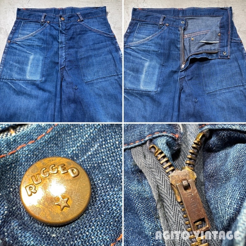 | RUGGED 【men3241H】 40's 50's デニムペインターパンツ ワークパンツ UFOリベット ダブルステッチ ピンロック コの字 実寸W29.5 AG | |