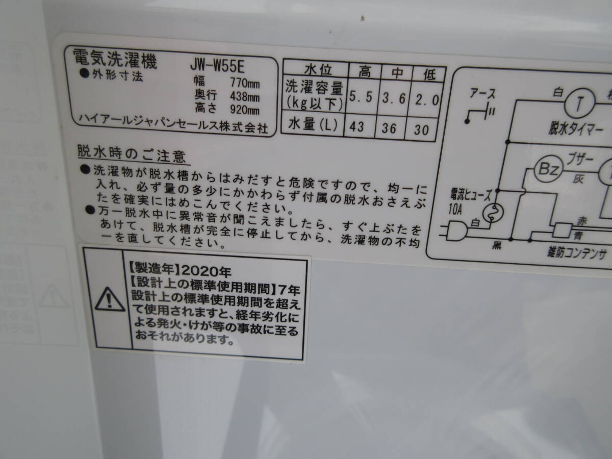 | 2020年製『ハイアール』2槽式洗濯機 JW-W55E | |