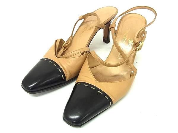 TANINO CRISCI タニノクリスチー レザー ヒール サイズ33 1/2 (約21.5cm) 靴 シューズ レディース ベージュ系×ブラック系 DD5088