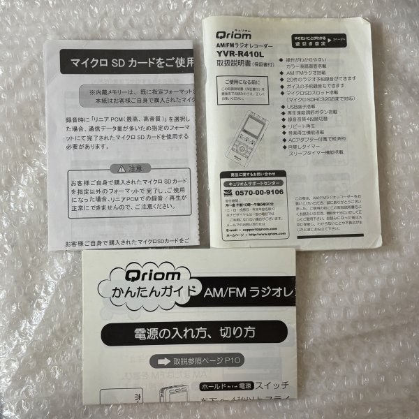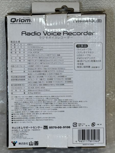 山善 キュリオム ラジオボイスレコーダー ブラック YVR-R410L B 箱付 QRIOM ICレコーダー ■ 松1933三