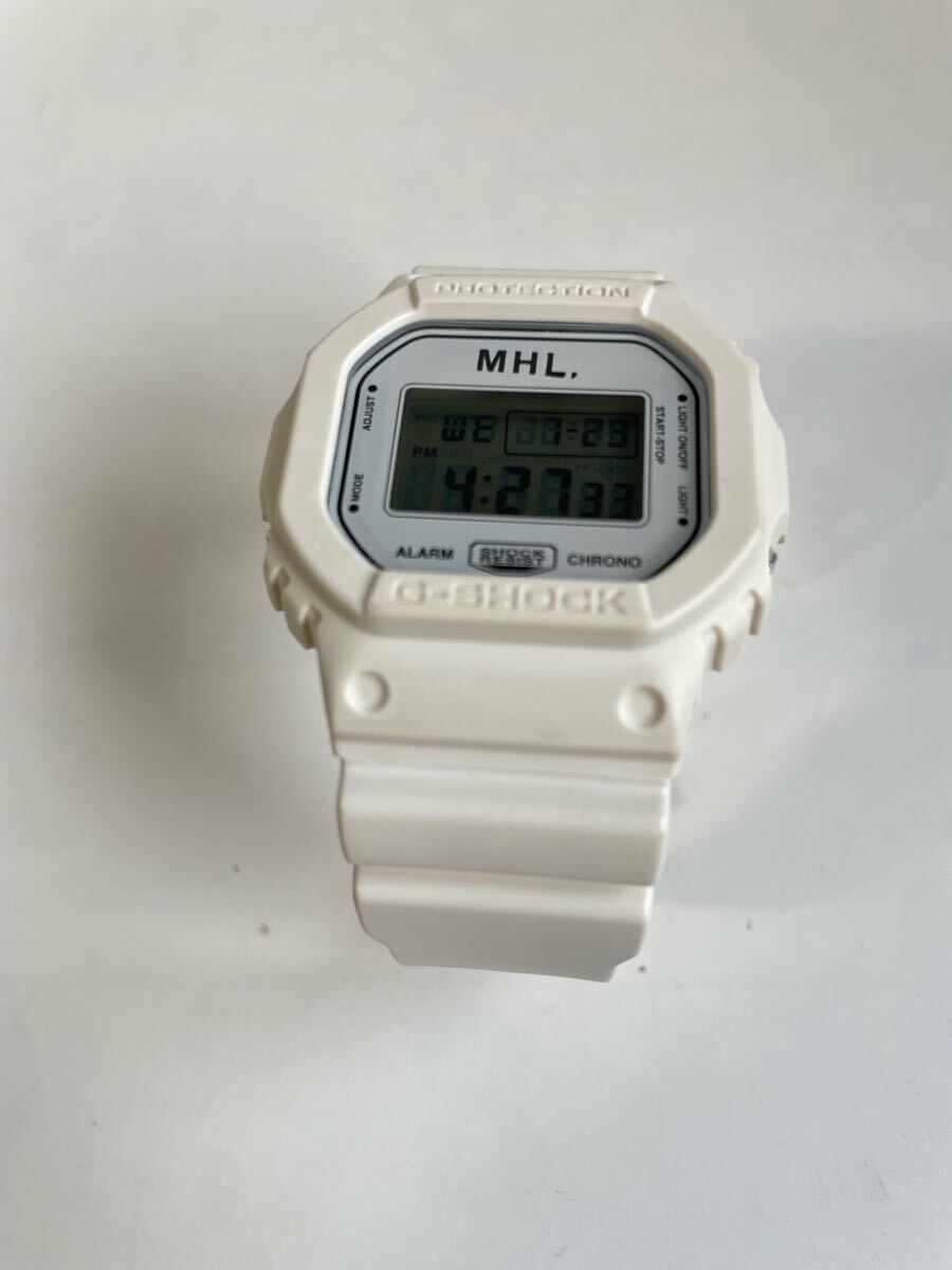 人気アパレルブランド「MHL.(エムエイチエル)」から「CASIO(カシオ)」G-SHOCK/DW-5600シリーズをベースにした別注コラボウォッチの”ホワイトフェイス”が販売されました。