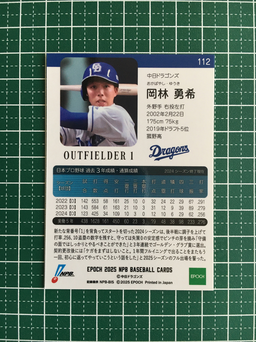 ★EPOCH 2025 NPB プロ野球カード #112 岡林勇希[中日ドラゴンズ]レギュラーカード★