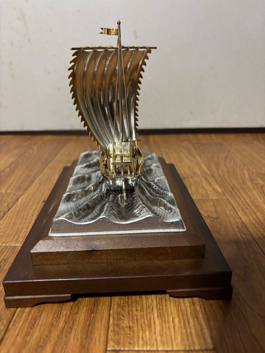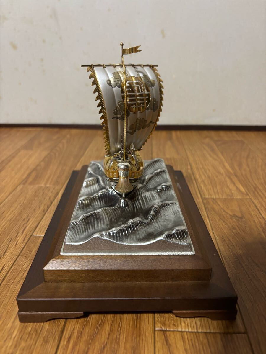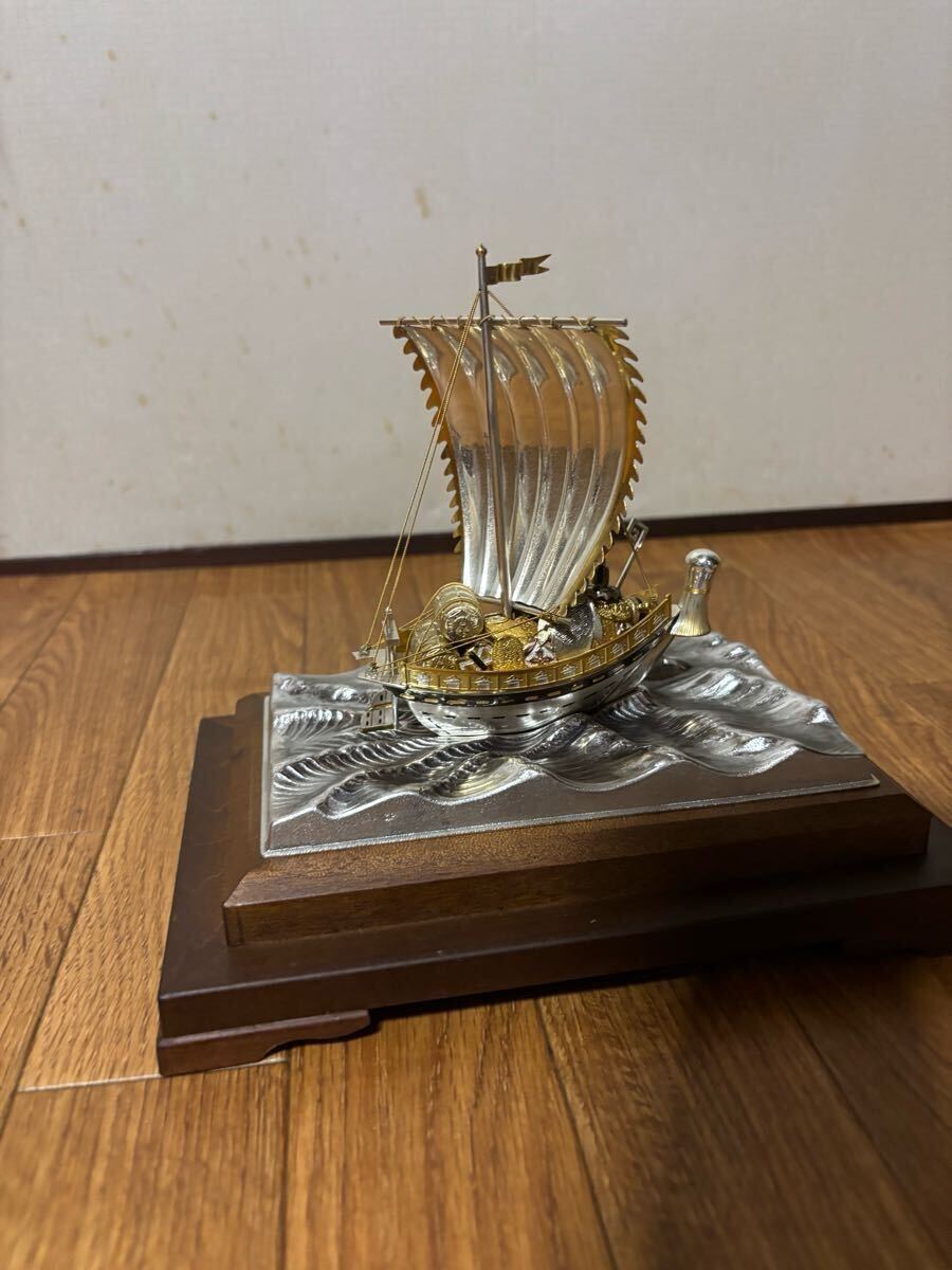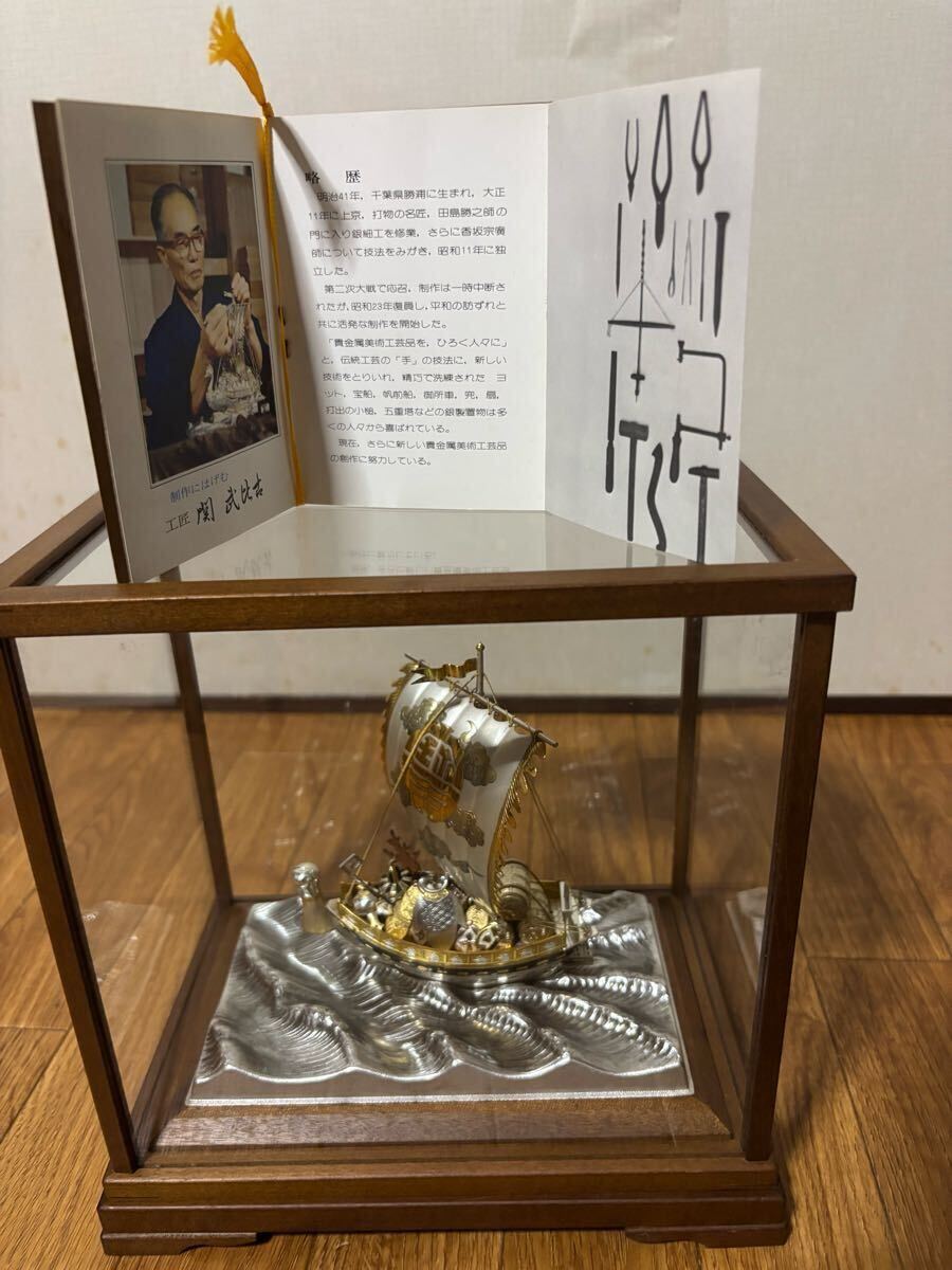 【純銀製 宝船 置物 ガラスケース付 YHMC】