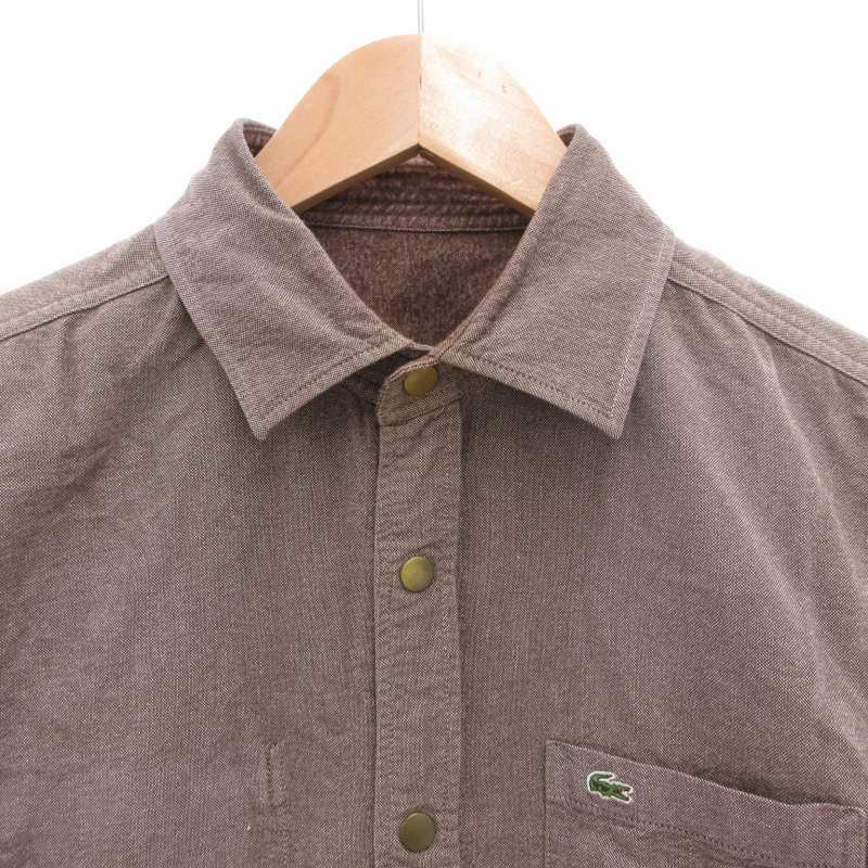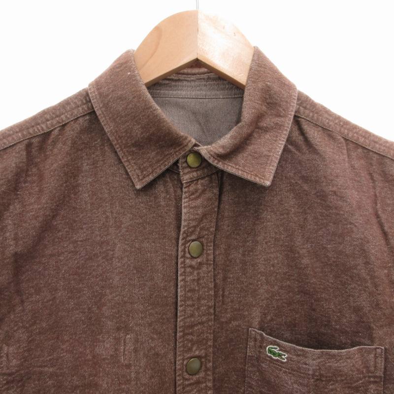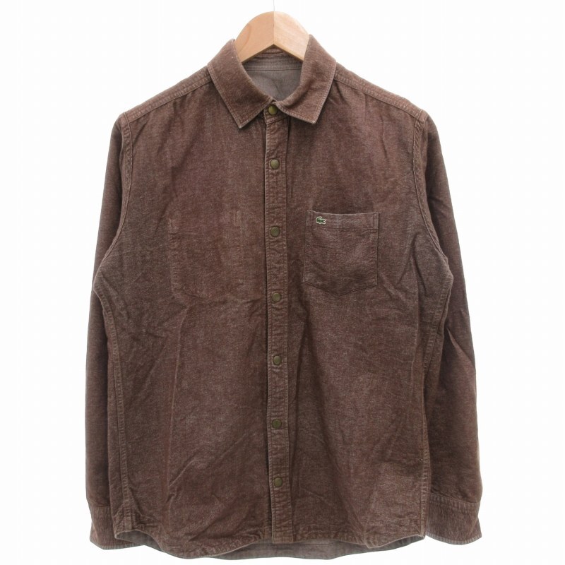 ラコステ LACOSTE リバーシブル 長袖シャツ カジュアル スナップボタン ロゴワッペン 4 茶 ブラウン /GV ■GY99 メンズ