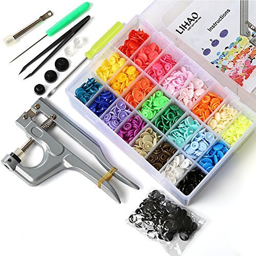 【在庫限りです】【特価】LIHAO375組スナップボタンと専用のハンティプレスセットT512mmプラスナッププラスチック24色ハンティプレT3T5T8対応