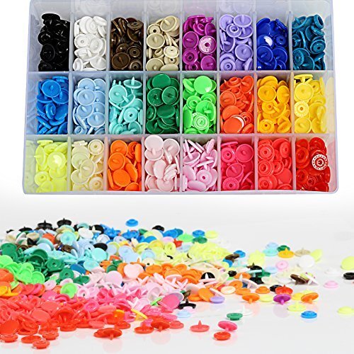 【特価】 LIHAO 375組 スナップボタンと専用のハンティプレスセット T5 12mm プラスナップ プラスチック 24色