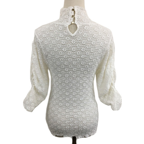 【仕様】首の後ろに開閉ボタンが付いています。 透け感があります。 袖先はゴムシャーリング仕様です。