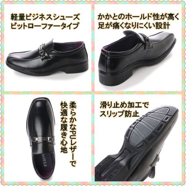 B品 メンズ ビットローファー ブラック 24.5cm 軽量 ソフト素材 スワールモカ 紳士靴 ビジネスシューズ ke_15116