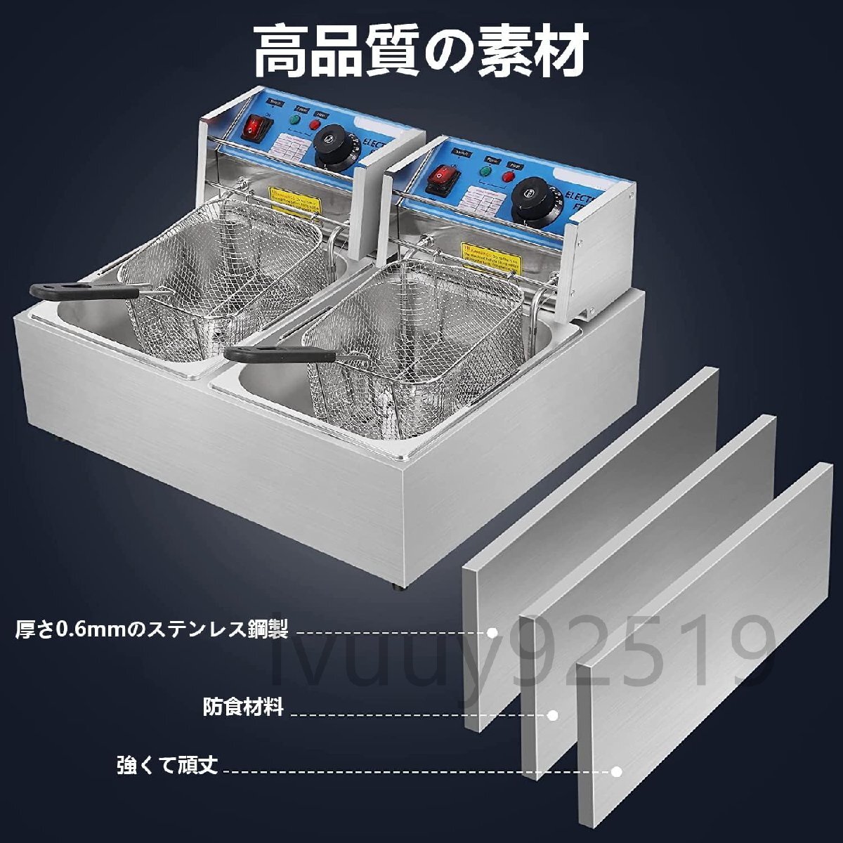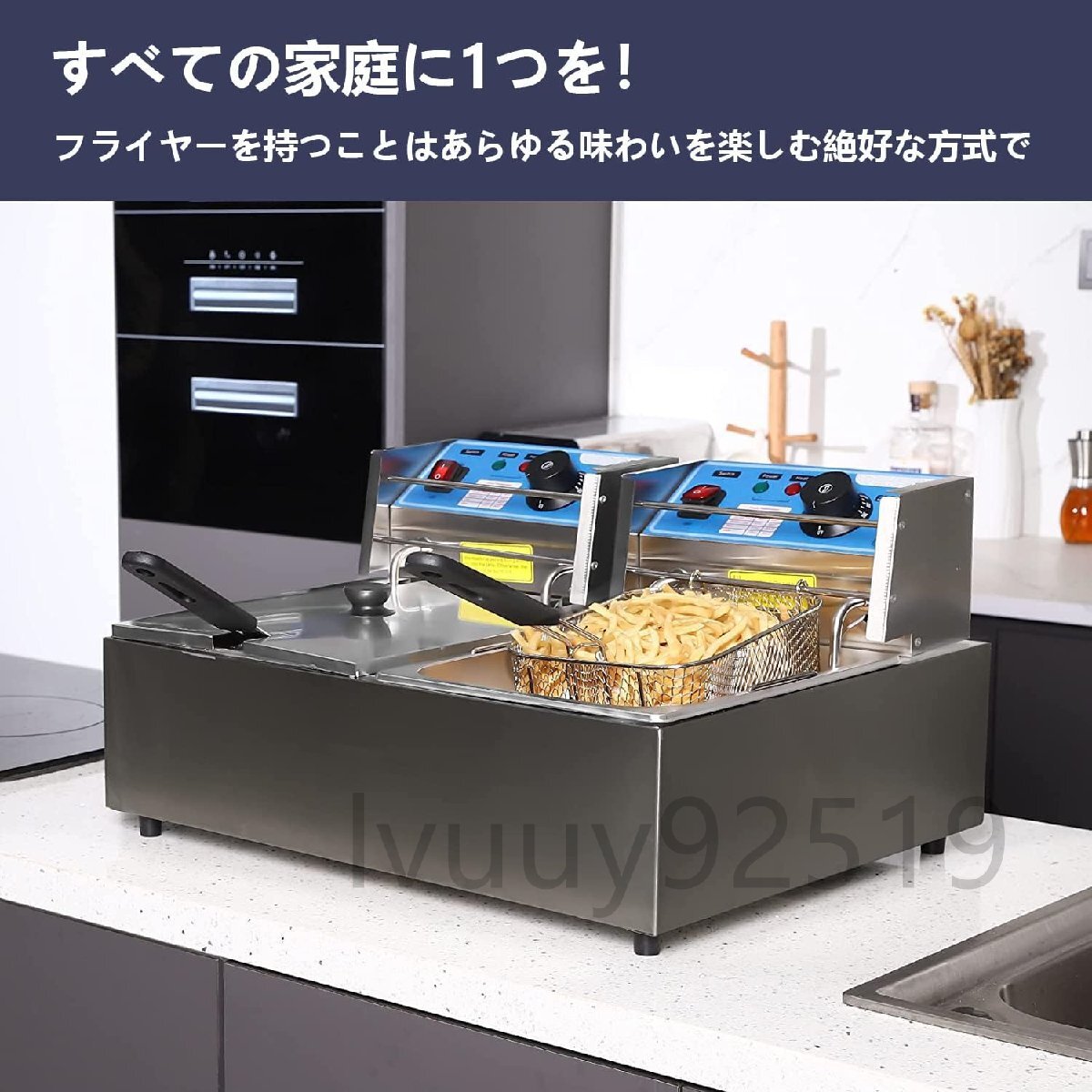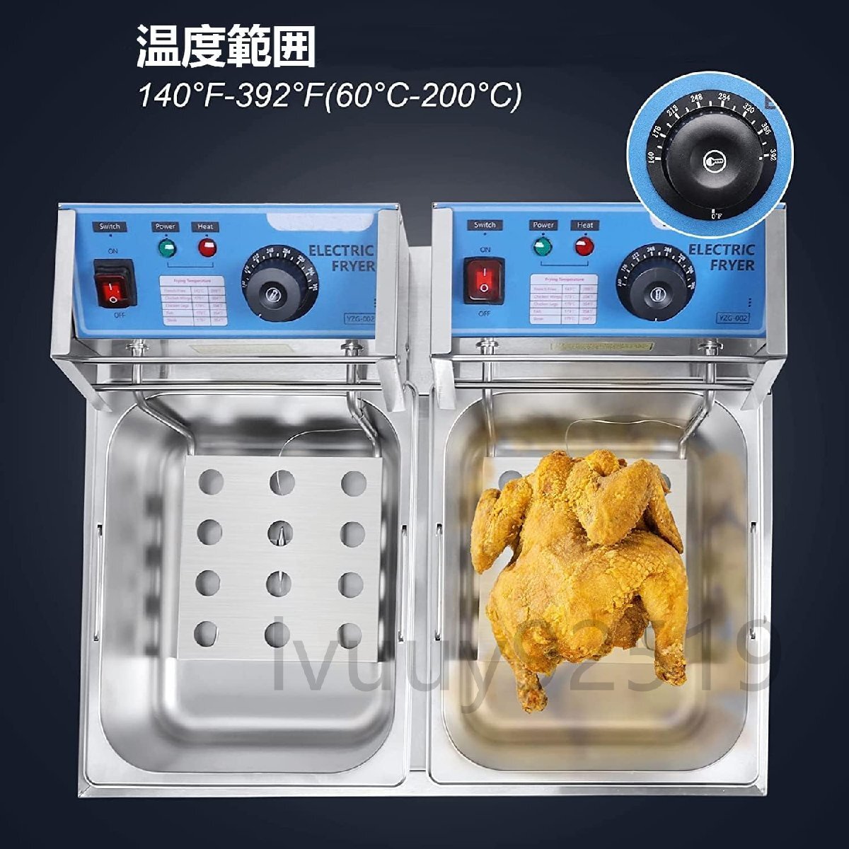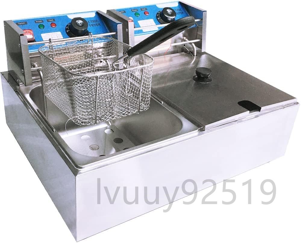 電気フライヤー 業務用フライヤー 12L大容量 揚げ物器 卓上フライヤー フライヤー テンレス 厨房機器 ミニフライヤー 業務用フライヤー 二槽式 温度調節