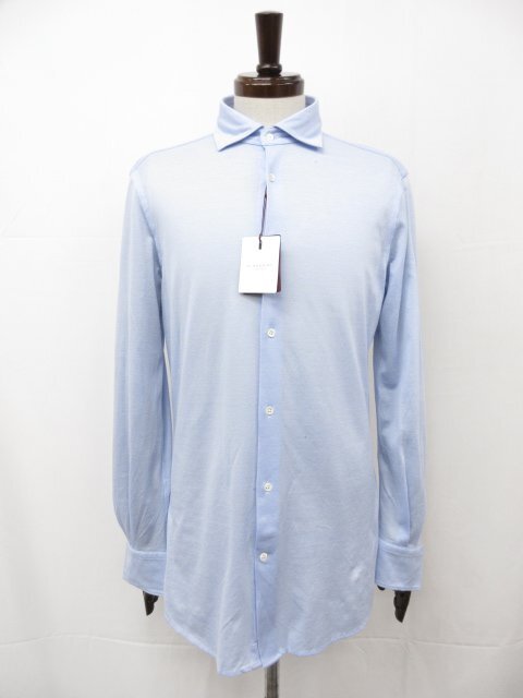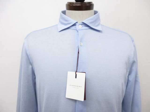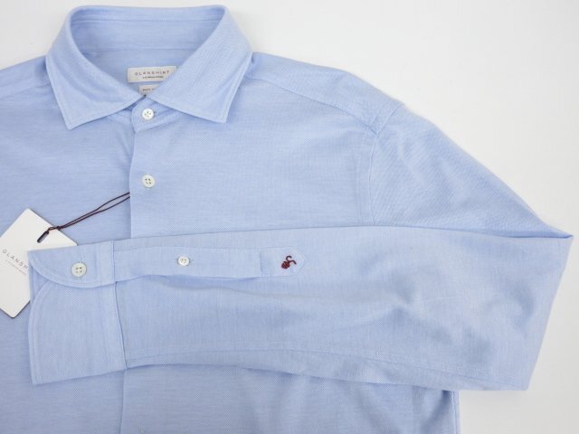 未使用 【グランシャツ GLANSHIRT】 5XFE01 G6633 800 定価42900円 ワイドカラー 織柄 長袖シャツ (メンズ) size39 ブルー系 ◇10GRS146◇
