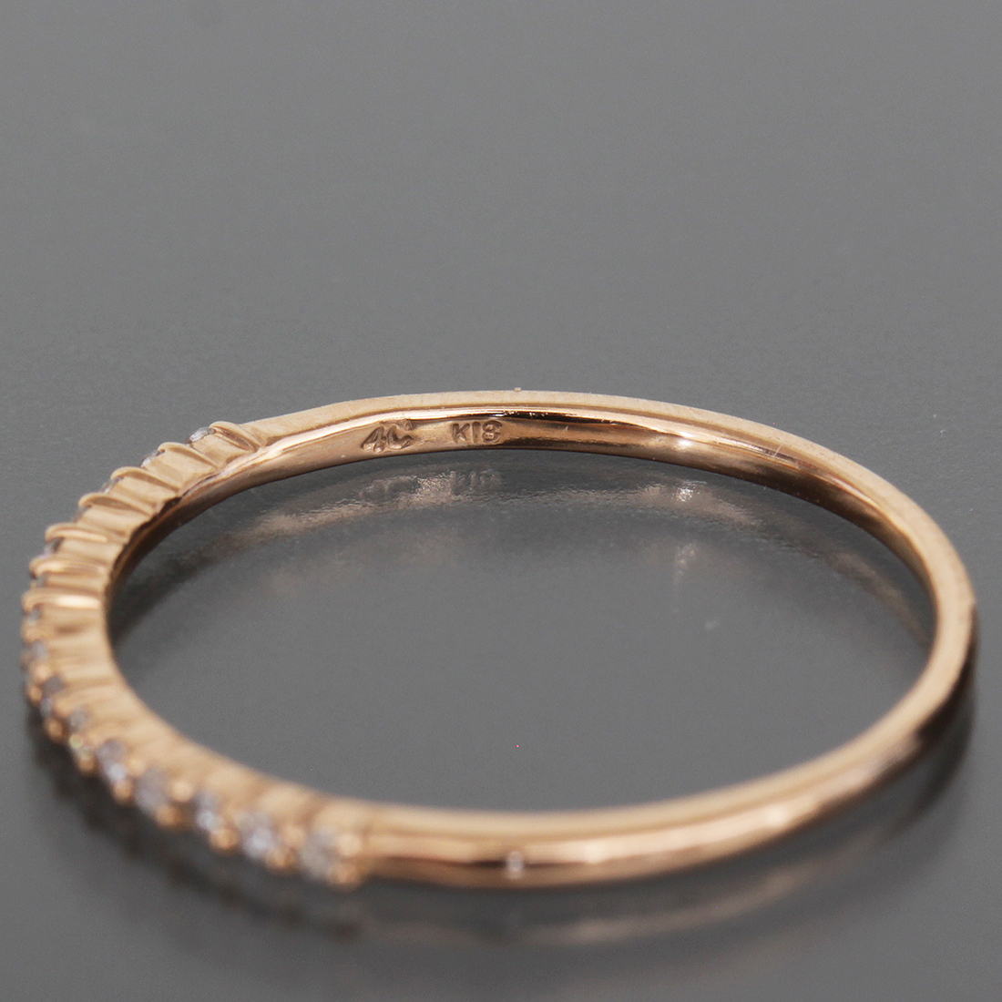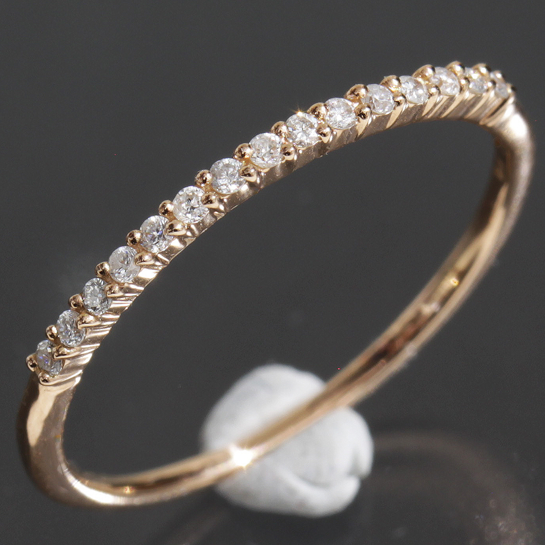 ■ ヨンドシーの高品質なダイヤモンドをセッティングしたハーフエタニティリングです。ピンクゴールドのかわいらしい温かみのある色合いにダイヤモンドが輝き、お手元に彩りを与えます。ぜひご検討下さい。