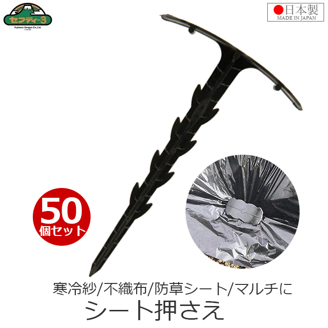 シート押さえ マルチ押さえ 長さ142mm 50本入り 日本製 防草シート 寒冷紗 農業用 マルチシート 不織布 杭 セフティー3