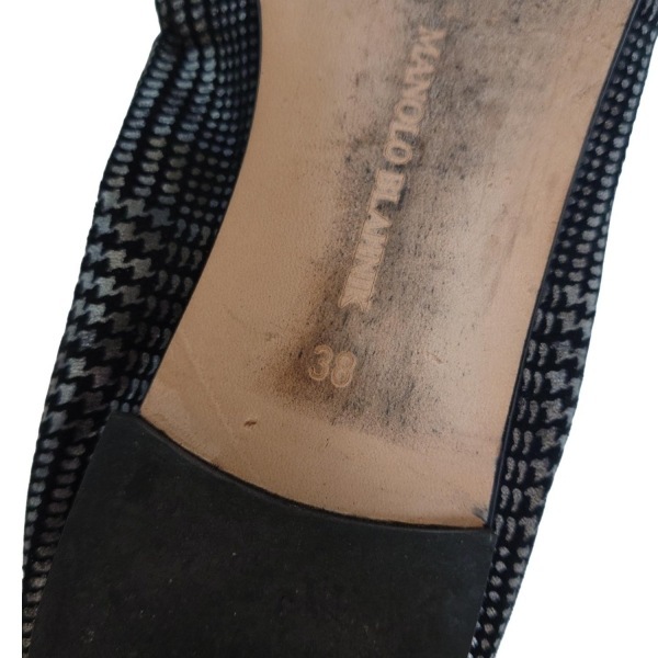 マノロブラニク MANOLO BLAHNIK フラットシューズ 38 - レザー 黒×シルバー レディース 千鳥格子柄 靴