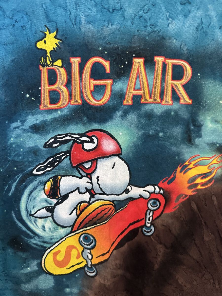 数年前に当オークションで落札しました。自分にはサイズが小さくて家族の者が着ていましたがあまり着ないので出品致します。破れほつれ無く程度は良好です。スヌーピのタイダイ柄です。サイズが合う方いかがですか?