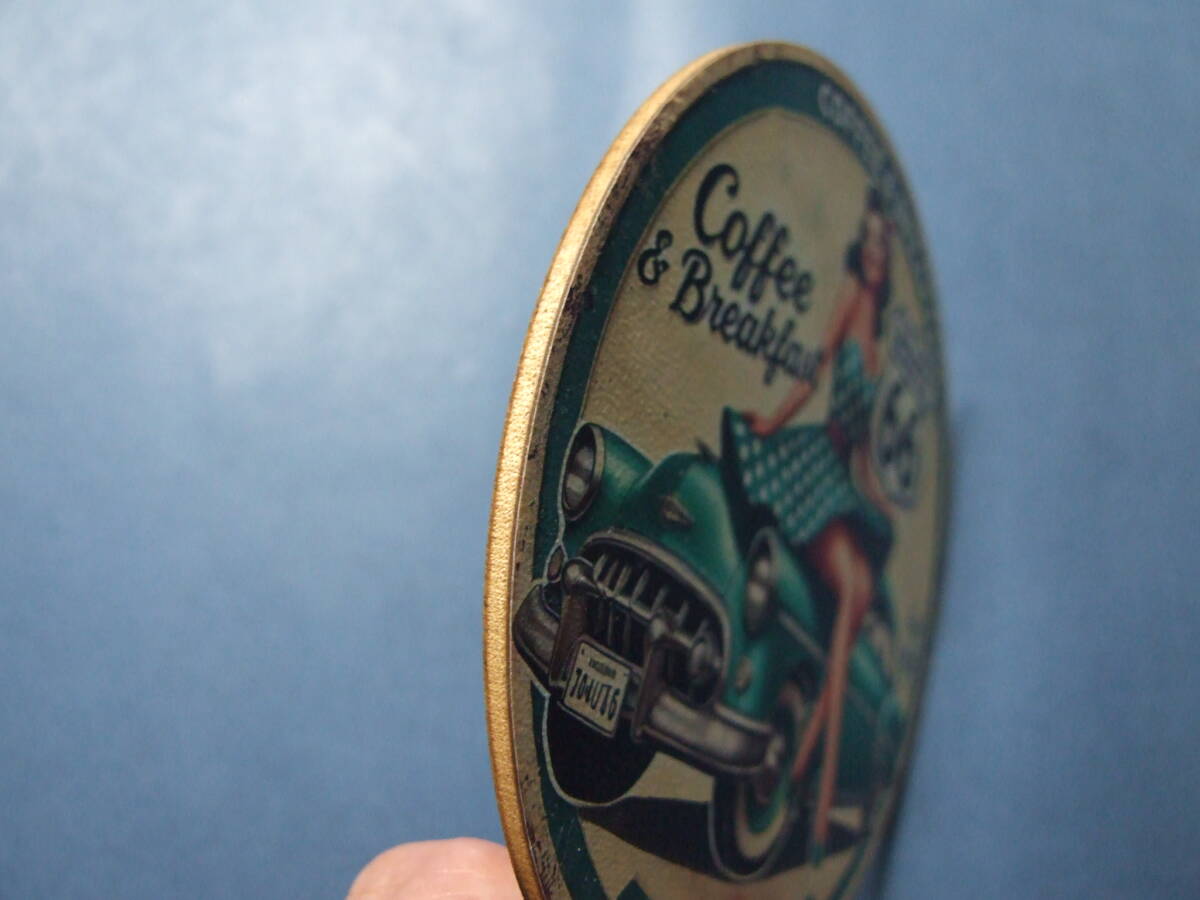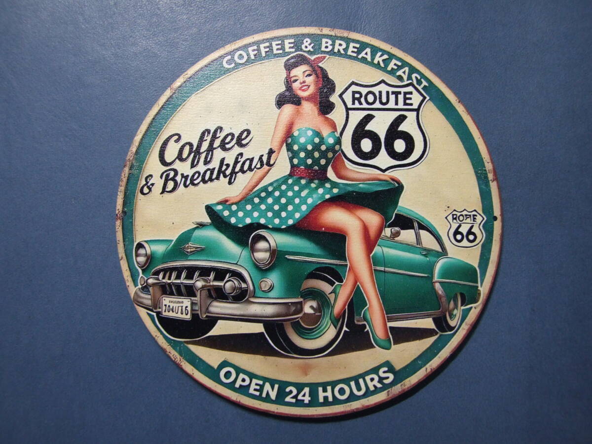 新品:コースター アメリカンイメージ柄 木製 φ100㎜ 厚み2.3㎜ 1枚 581-7M-1.