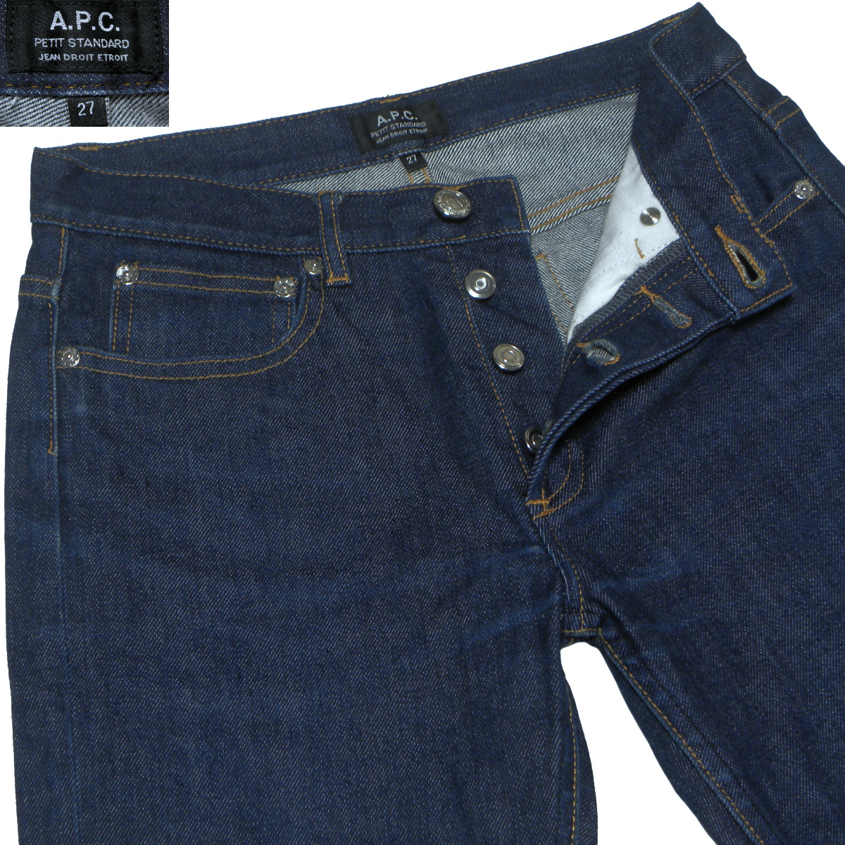 A.P.C. PETIT STANDARD W27 ストレッチ スリムデニムパンツ ジーンズ アーペーセー プチスタンダード ◆商品概要 APC PETIT STANDARD ボタンフライ ストレッチ デニムパンツ/ジーンズ 27インチ 股下74cm実測値です(USED)。 ◆商品状態 アタリ色落ちが見られるほかは、目立った傷み汚れは見受けられません。 ◆素材 綿98% ポリウレタン2% ◆実寸 【単位はcm:平置きで計測】 ウエスト:34.5 股下 :74 股上 :22.5 わたり幅:22.5(股下10cmを計測) 裾幅 :14.5 素人採寸につき若干の誤差はご容赦願います。 ◆検品について 出品前に入念に商品状態を確認し、汚れや傷みがあればできるだけ具体的に記載するように心がけています。希に微小な瑕疵を見落とす場合がありますが、その際には注意して見ないと気づかないレベルのものということで、どうかご容赦願います。 |