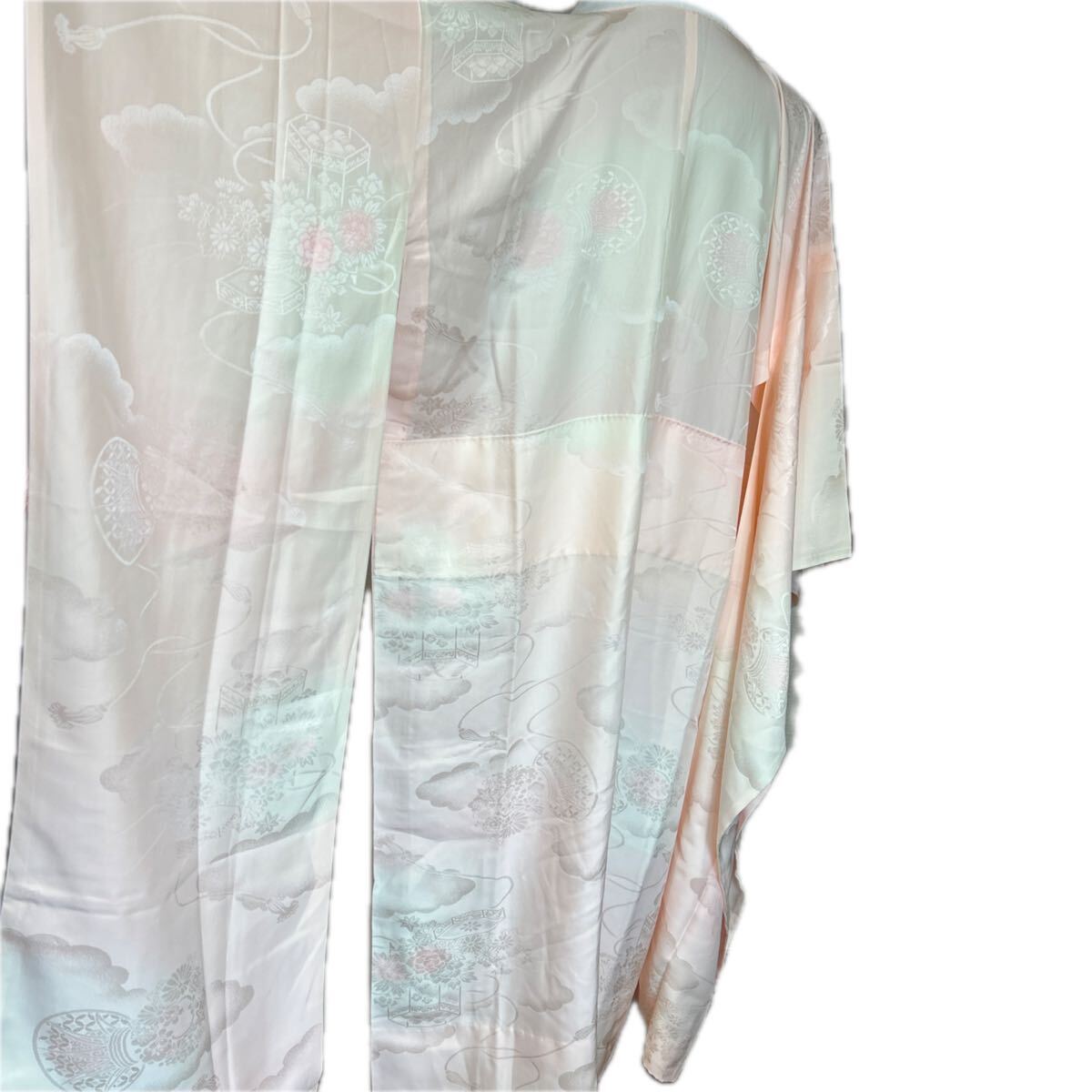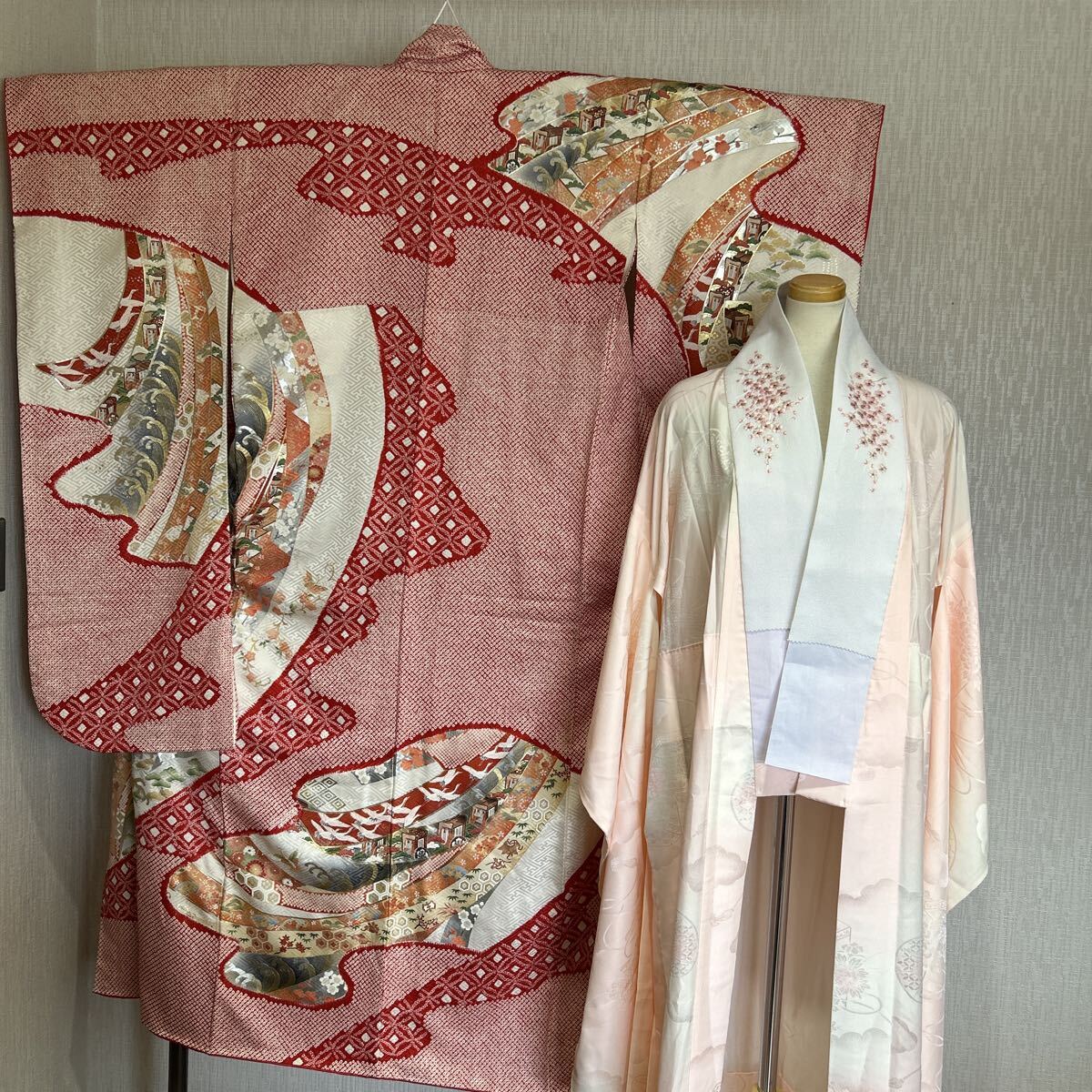 ■寸法 身丈:157cm 裄丈:67cm 袖丈:107cm 袖幅:34cm 前幅:23cm 後巾:28.5cm ※素人採寸の為多少の誤差はご了承願います。 ■商品の状態:中古品。 長期自宅保管品です。 委託品の為、購入時期、購入店は不明です。 着用跡がないのでほぼ未使用だと思います。 刺繍入りの半襟つきですが、半衿のみ黄ばみ汚れあります。 着用困難なダメージはありません。 ※あくまでも個人主観によるもので100%見落としがないとは言えません。 気になる点はご質問下さい。 注意事項 ★落札後48時間以内に連絡が取れなかった場合は、キャンセル扱いとさせて頂きます。 ※削除を行いますとシステム上「悪い」評価が入ります。ご了承下さい。 ★値下げ交渉のお手間を省くため、最安価格でご提供しております。 ★商品の安全性を考慮して配送方法を選んでおります。落札者からの配送業者指定は受け付けておりません。 ★総合評価が低い方との取引はお断りしています。 ★基本的にご入金確認できた翌日までに発送しますが、 土日祝日は近くの郵便局がお休みの為発送は平日です。 ★返品返金は受付不可 | |||