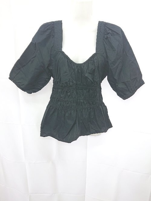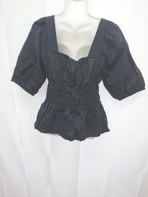 ◇ ⊂ GAP ギャップ スクエアネック ギャザー パフスリーブ カットソー プルオーバー サイズXS ブラック レディース E
