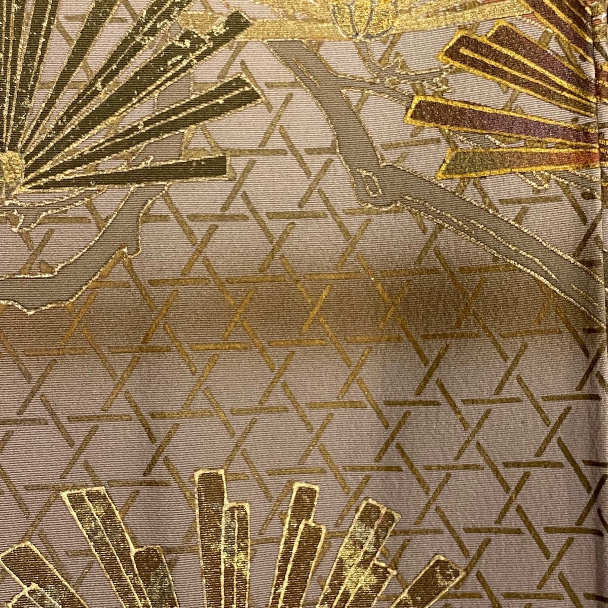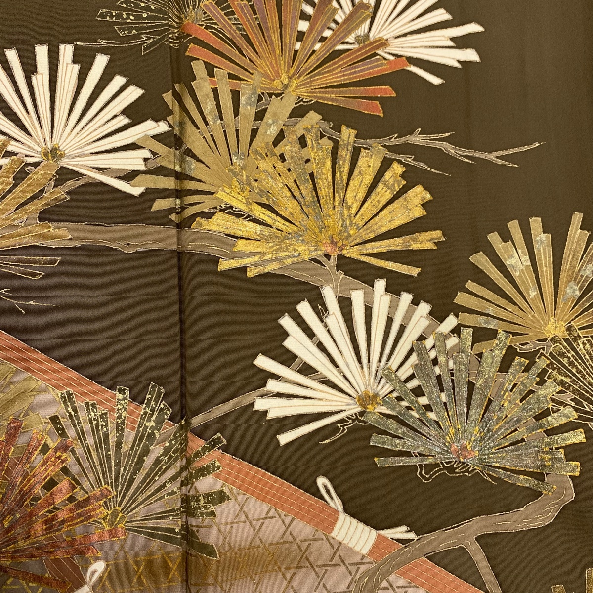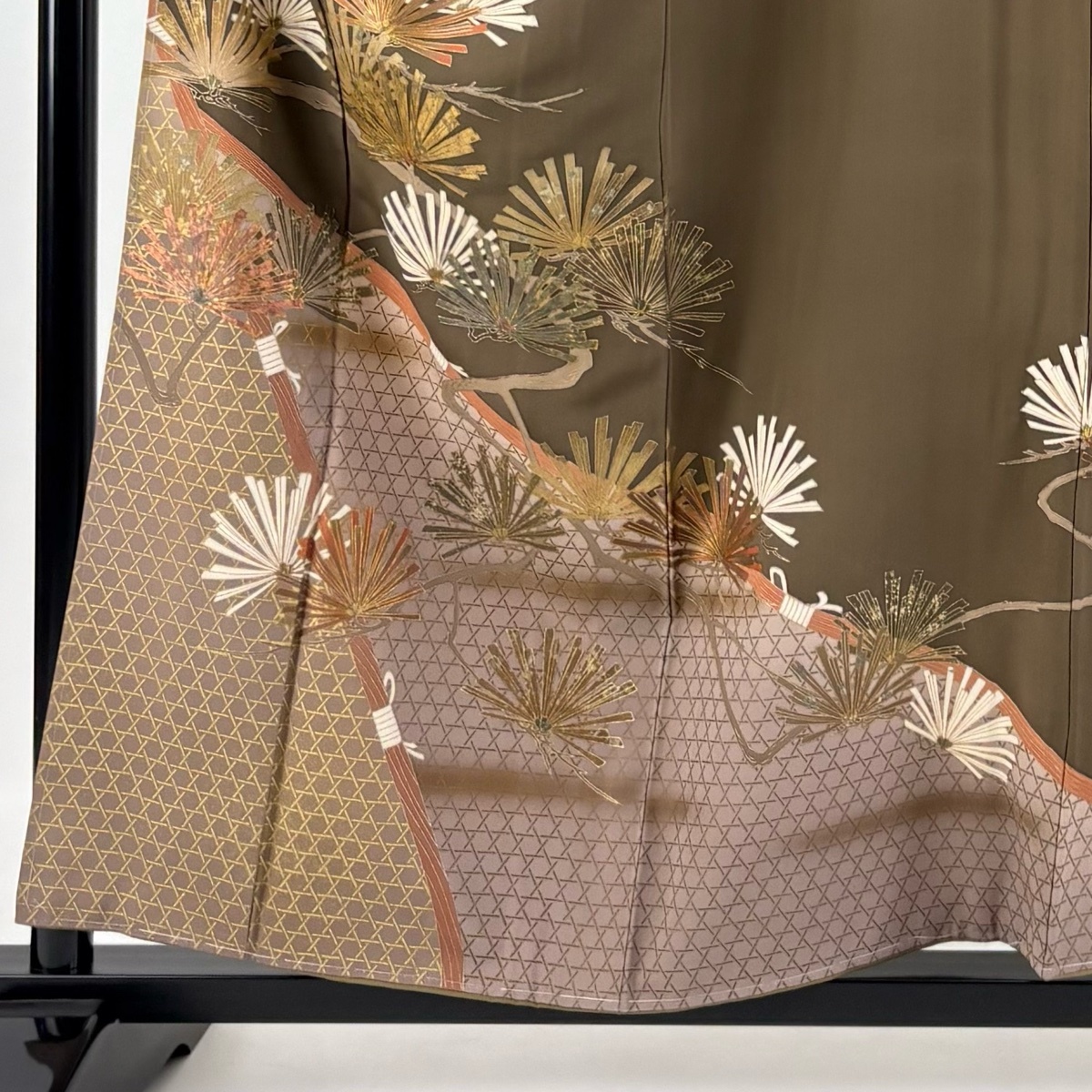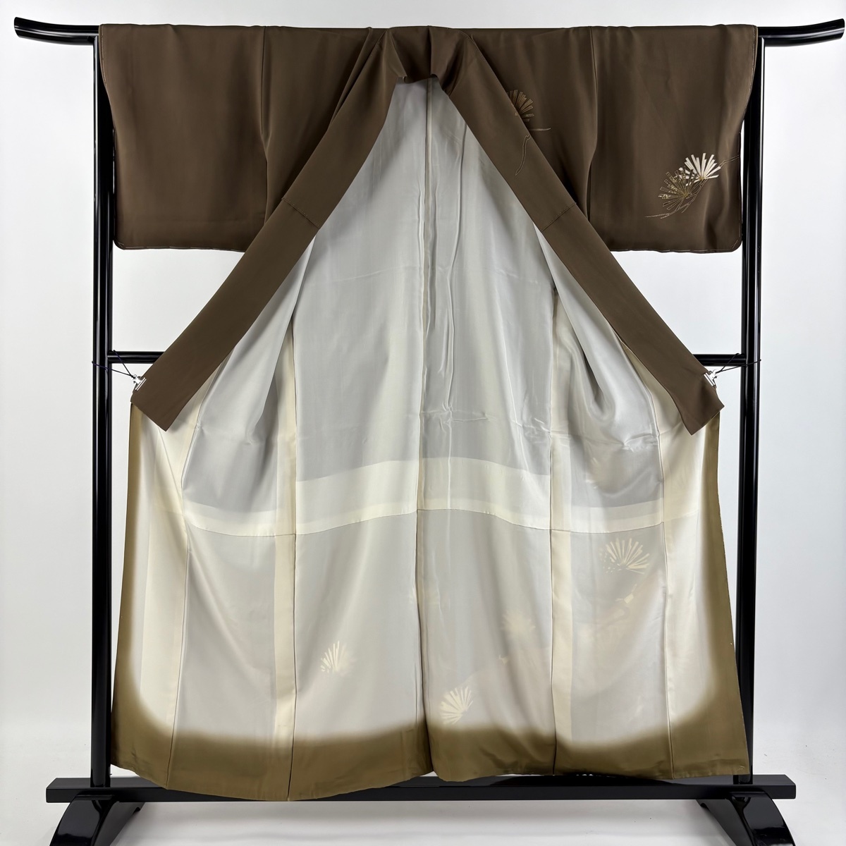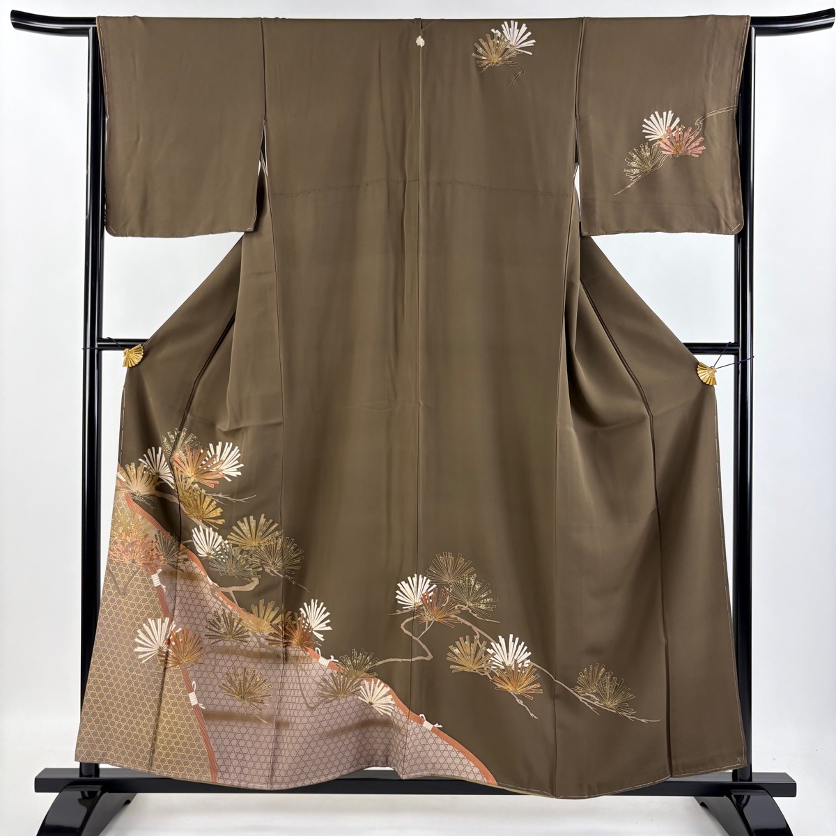 | 訪問着 秀品 光悦垣 松 金彩 焦茶色 袷 身丈157 裄丈65.5 M 正絹 【中古】 |