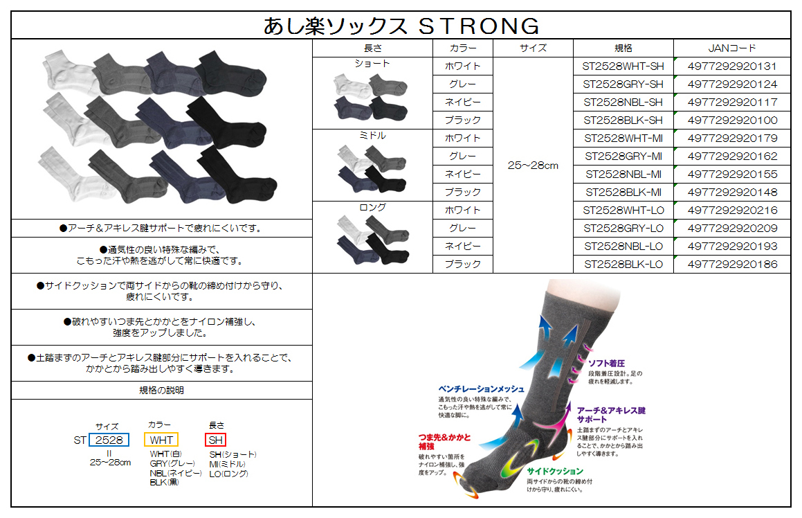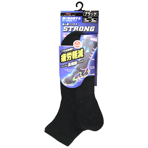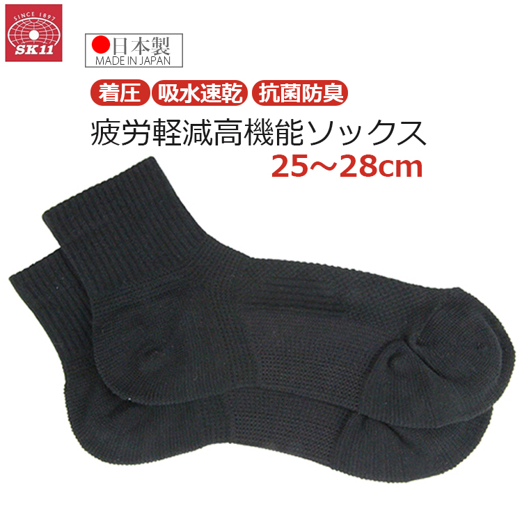 SK11 着圧ソックス 着圧靴下 25~28cm 男性用 メンズ ブラック 黒 疲労軽減 防臭 ショート丈 あし楽ソックスSTRONG