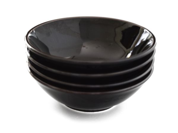 4個セット■リンドスタイメスト■シャイニング ブラック 深黒茶色 カフェボウル ボウル16.5cm 陶磁器 カラー食器 グリーン