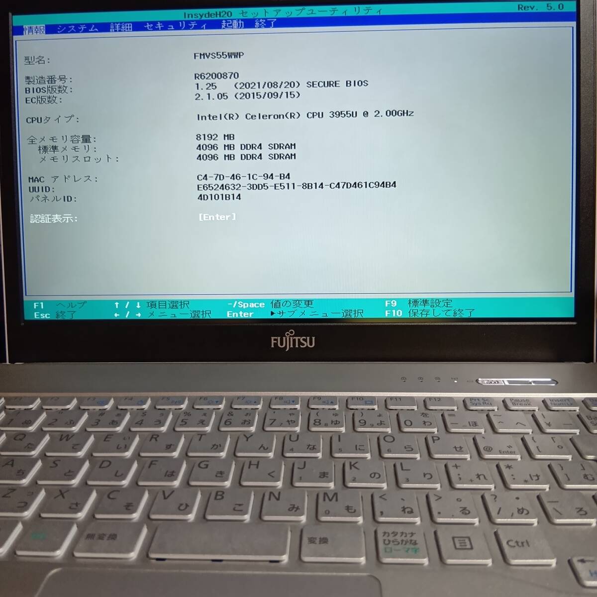 ★  富士通ノートパソコン美品 LIFEBOOK SH55/W 128GB 8GB Celeron 3955U 2.0GHz Windows11 バッテリー良好 ★