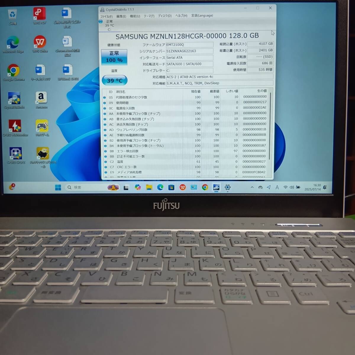 現在Windows11 24H2で動作しています、TPM確認済セキュアブート有効確認済、更新プログラム/31まで更新済みSSD使用時間少なく正常バッテリー状態良好