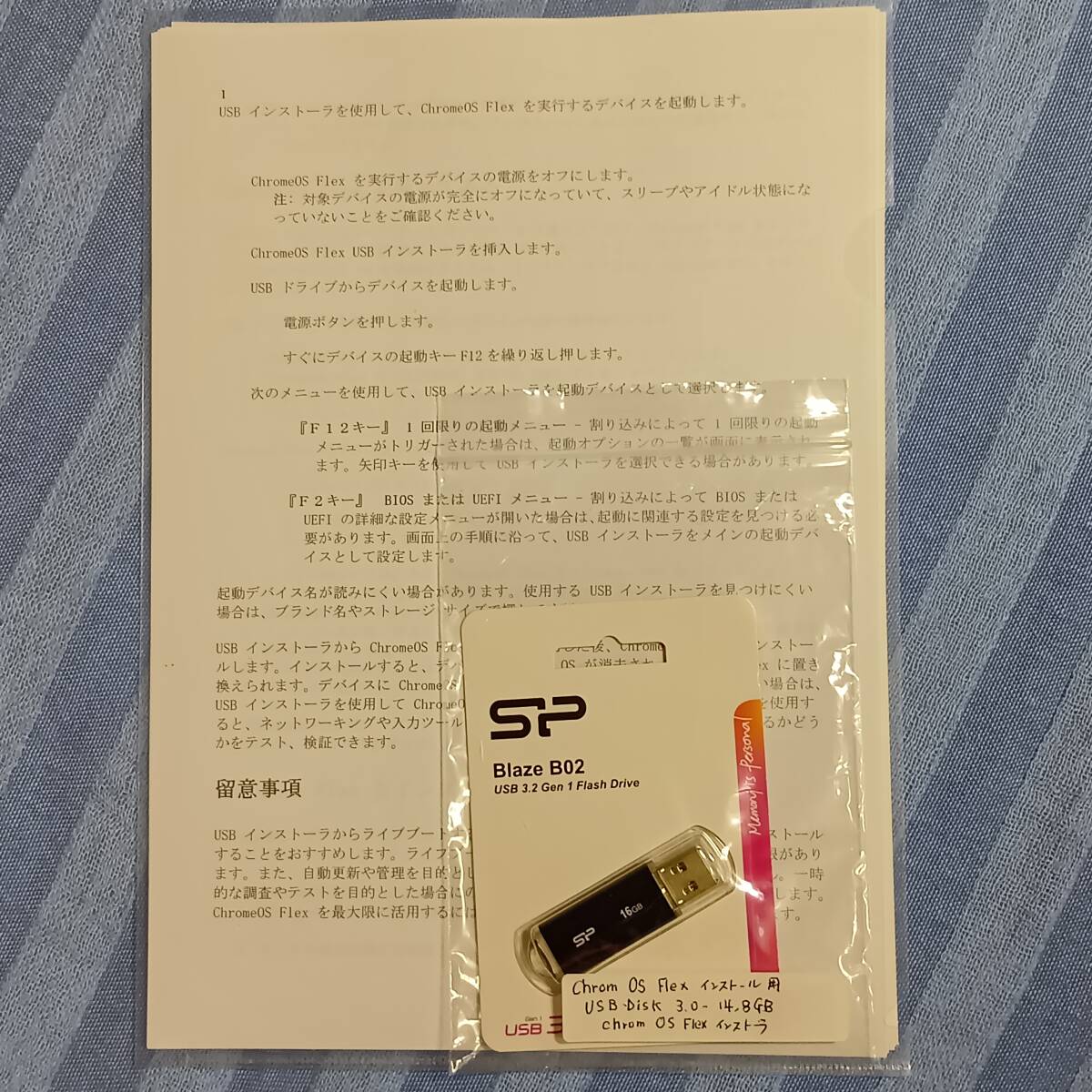 ChromeOS Flex USB インストーラ付属、手順書をデスクトップに保存してあります。