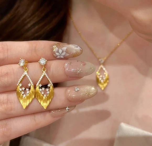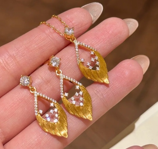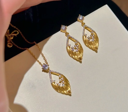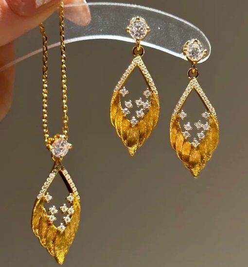 綺麗 高級感 ジュエリー2点セット ピアス ネックレス メッキ ピカピカ イヤリング アクセサリー