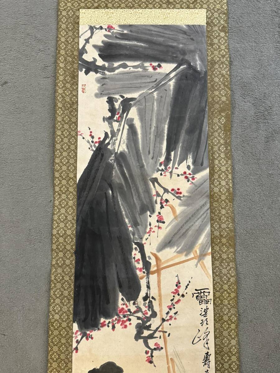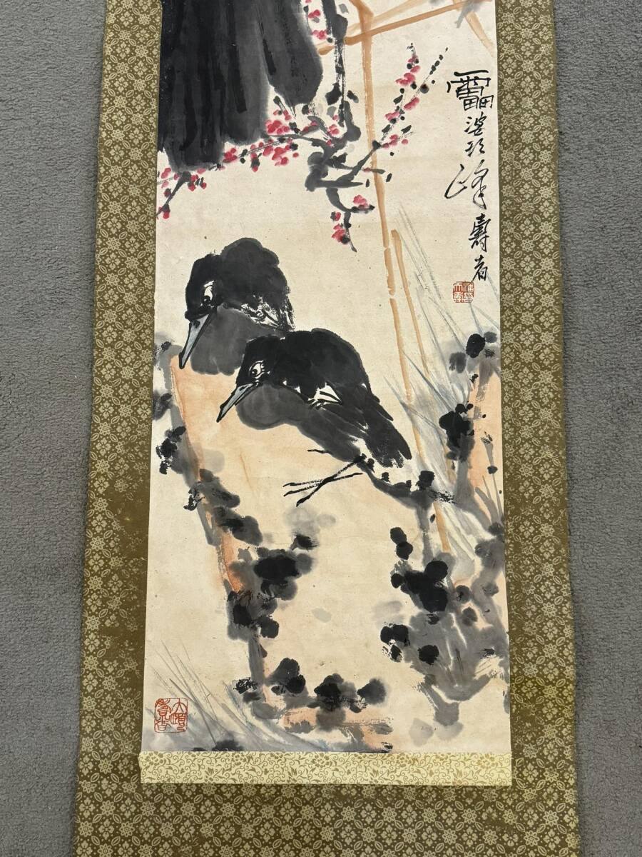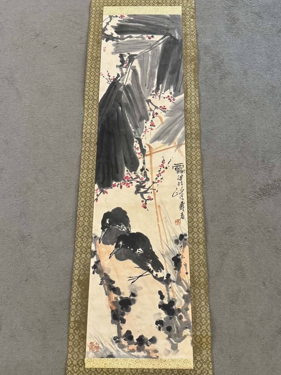 『三希堂』 中国画 古美術 [潘天寿花鳥図] 掛け軸 真筆逸品 肉筆保証 中心尺寸132.5X33cm ABC676