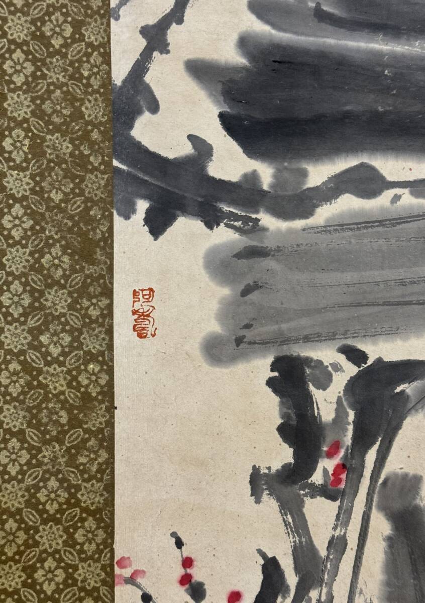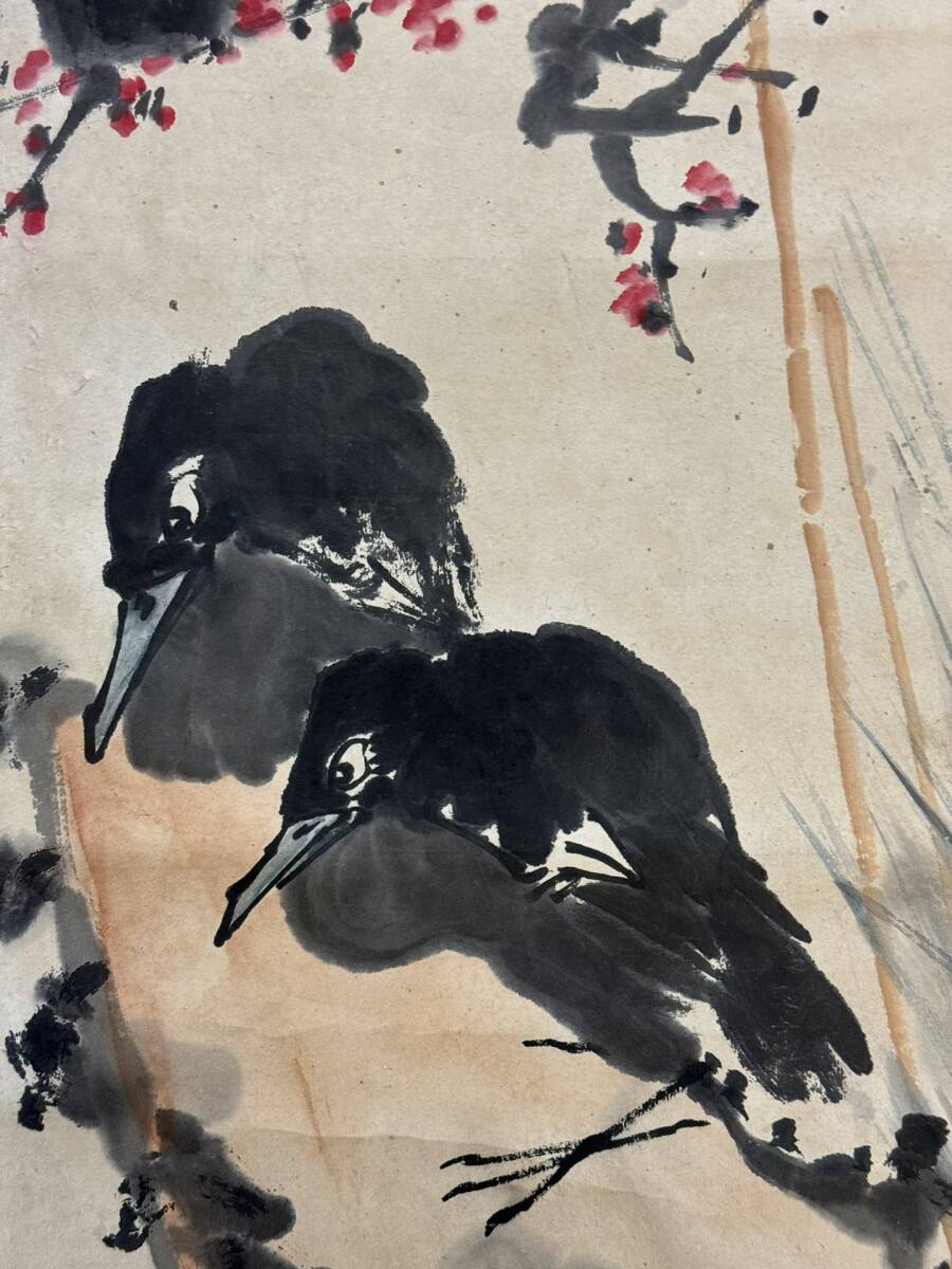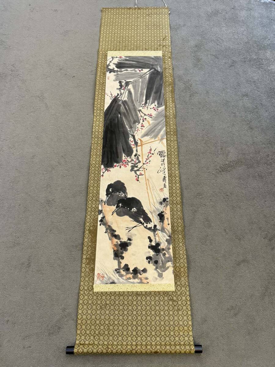 『三希堂』 中国画 古美術 [潘天寿花鳥図] 掛け軸 真筆逸品 肉筆保証 中心尺寸132.5X33cm ABC676