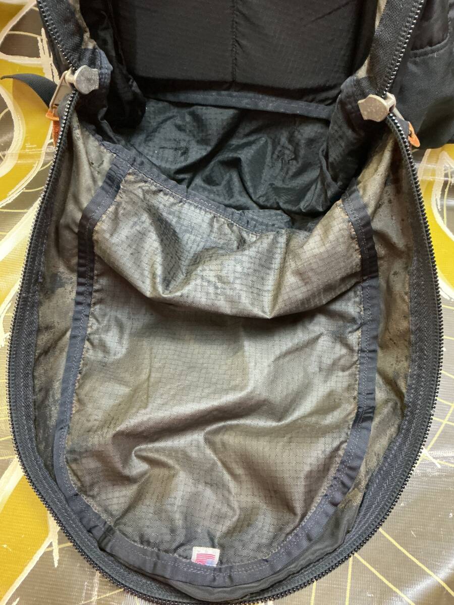 サイズは縦約44.5cm上横約35.5cm底マチ約17cmです。状態は裏地剥がれ跡、使用感、スレ、汚れ、変色はあります。正面ポケットのレザーのつまみが一つありません。現状洗濯した際の洗剤の匂いが少しあります。 画像よりも若干色味が濃い感じです。いかがでしょうか?NCNRでお願いいたします。自己紹介もお読みください。よろしくお願いいたします