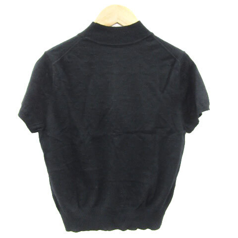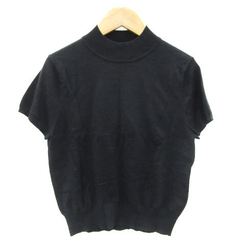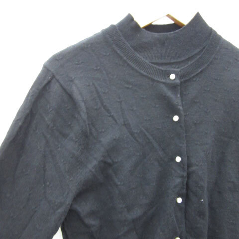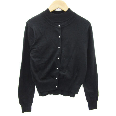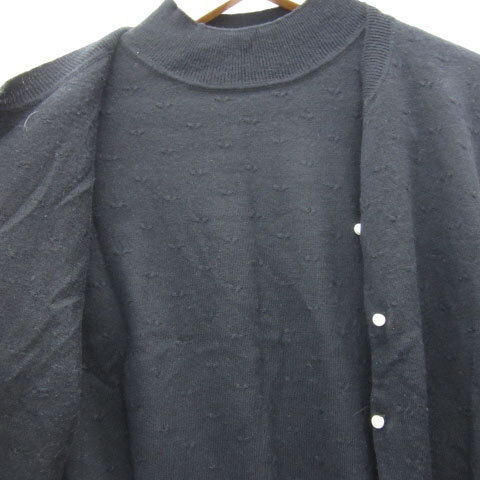 ルルウィルビー アンサンブルニット カーディガン ミドル丈 カットソー 半袖 パールビーズ ウール混 ブラック 黒 レディース