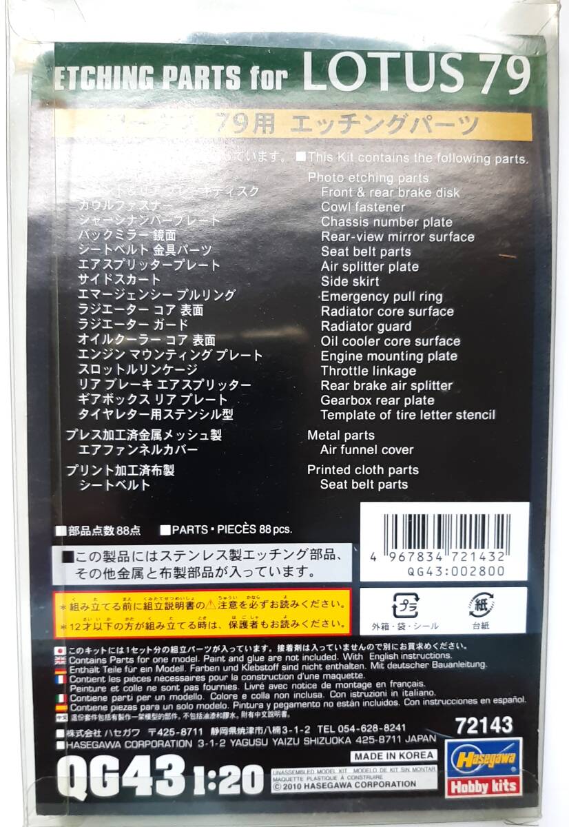 ハセガワ 1/20 ロータス 79 `1978 ドイツGP ウィナー`初回特典付+純正エッチング